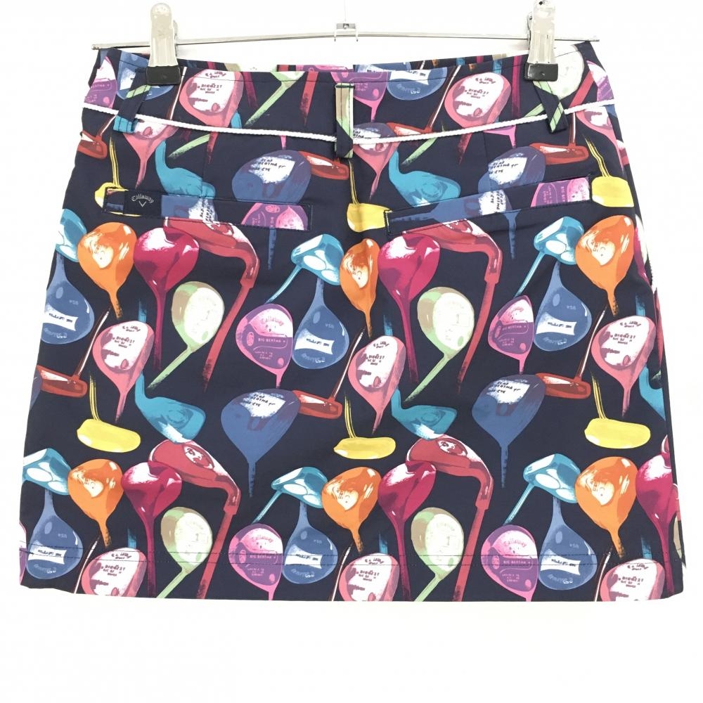 【超美品】キャロウェイ スカート ネイビー×マルチ ゴルフクラブ柄 内側インナーパンツ レディース SS ゴルフウェア Callaway