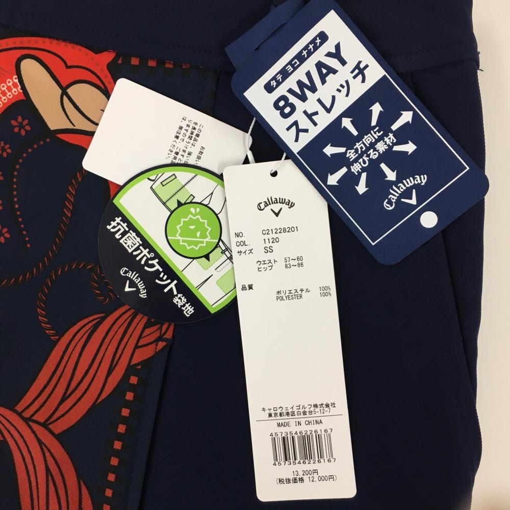 【新品】キャロウェイ スカート ネイビー×レッド 前面総柄 8WAYストレッチ レディース SS ゴルフウェア Callaway