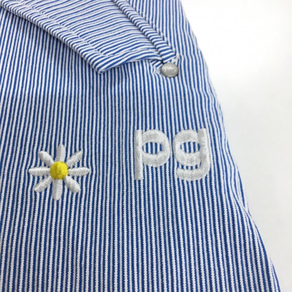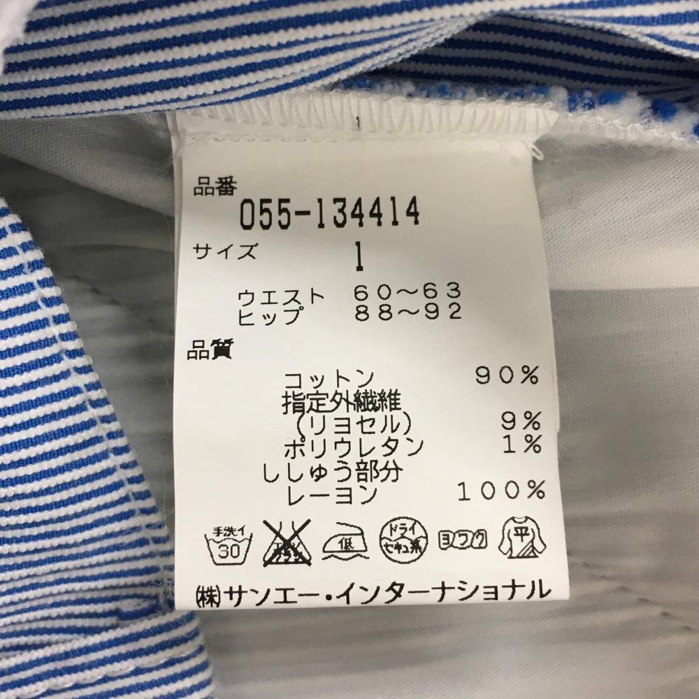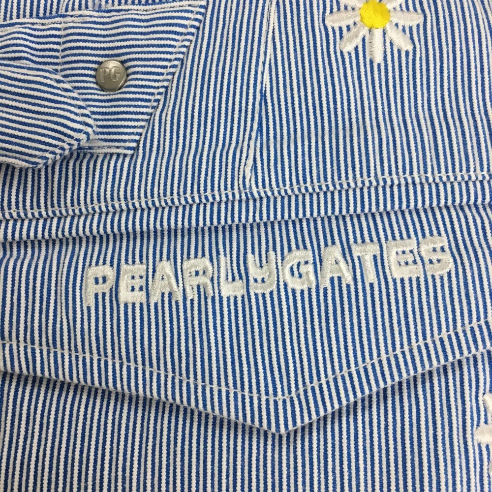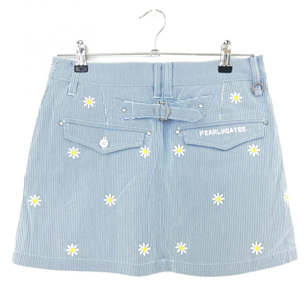 【超美品】パーリーゲイツ スカート ブルー×白 細ストライプ 花刺しゅう ストレッチ レディース 1(M) ゴルフウェア PEARLY GATES