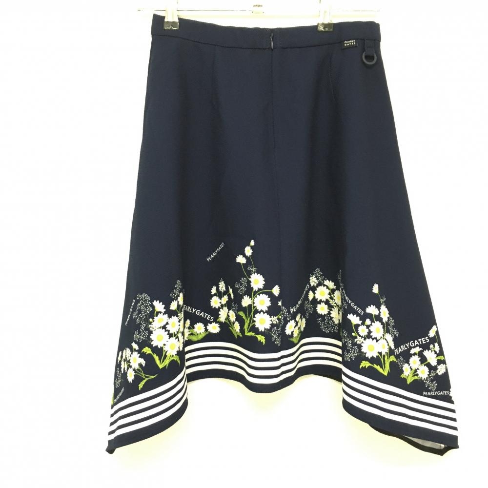 【超美品】パーリーゲイツ スカート ネイビー×白 裾花柄 レディース 0(S) ゴルフウェア 2022年モデル PEARLY GATES