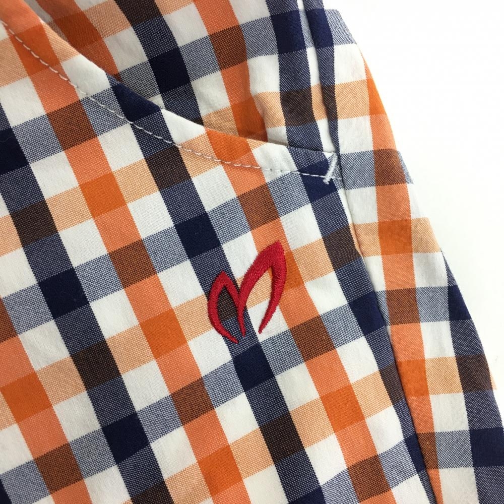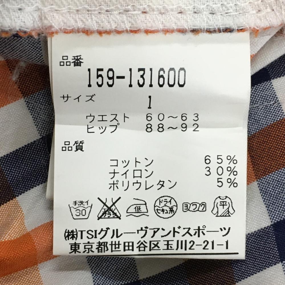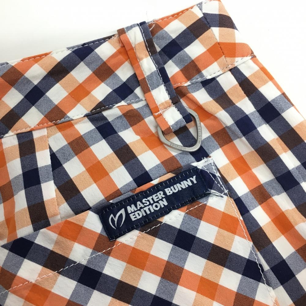 【美品】マスターバニー パンツ 白×オレンジ×ネイビー チェック レディース 1(M) ゴルフウェア MASTER BUNNY EDITION