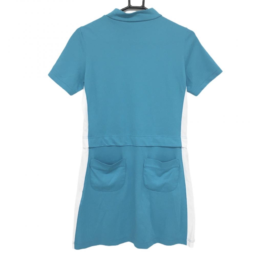 アダバット 半袖ハイネックワンピース ブルー×白 フロント刺しゅうロゴ ポーチ取り外し可 レディース 36(S) ゴルフウェア adabat