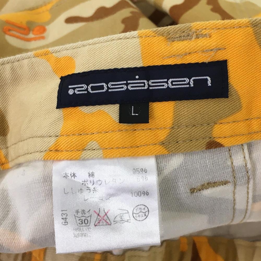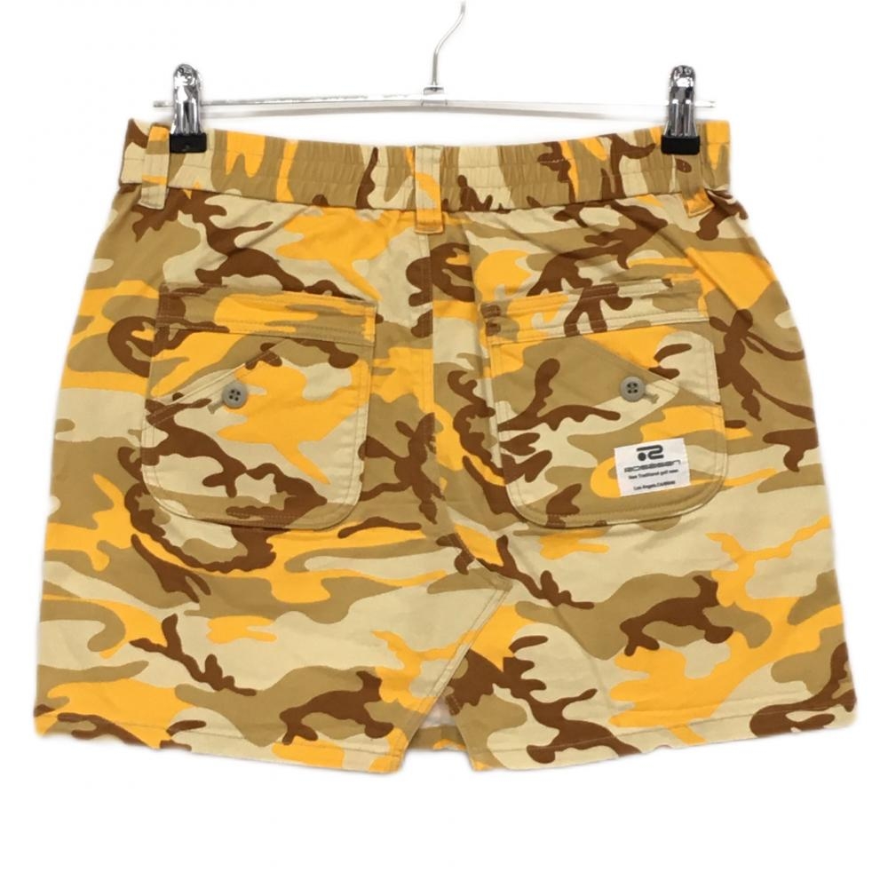 【美品】ロサーセン スカート ベージュ×オレンジ 迷彩 カモフラ 後ろウエストゴム レディース L ゴルフウェア Rosasen