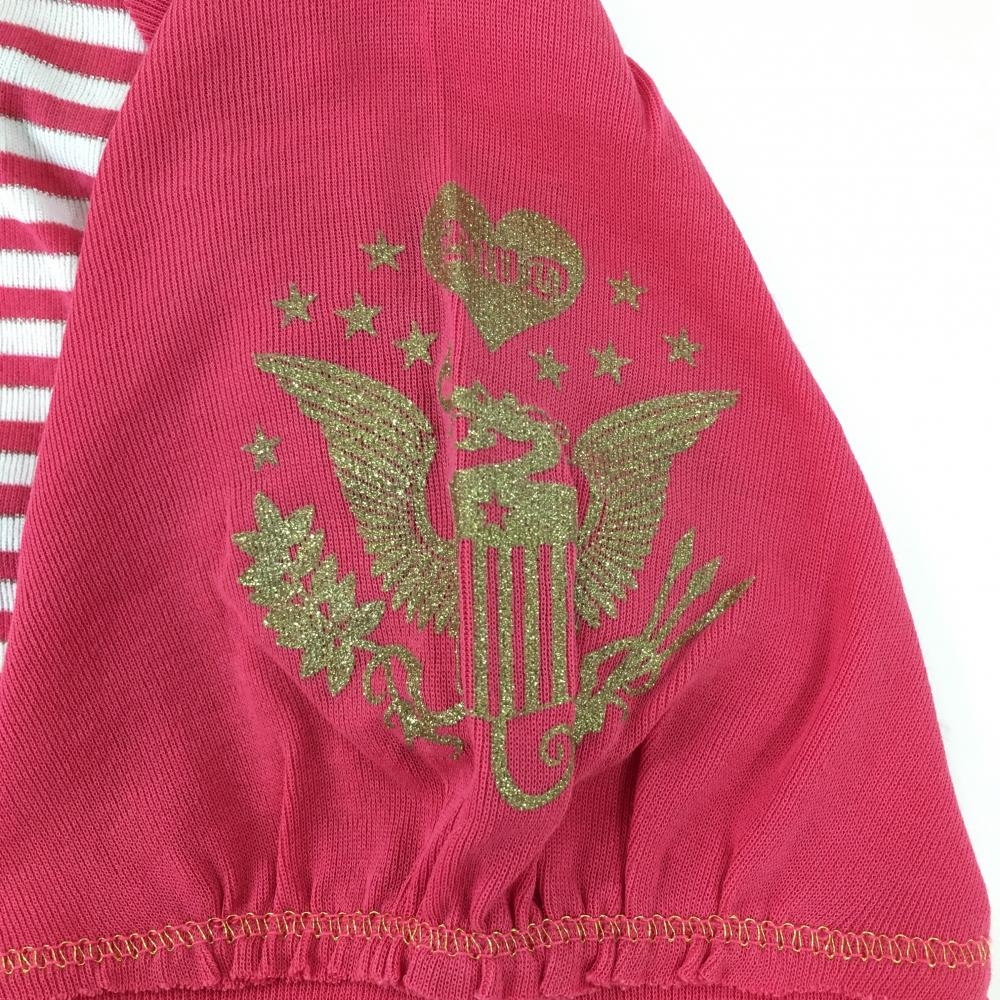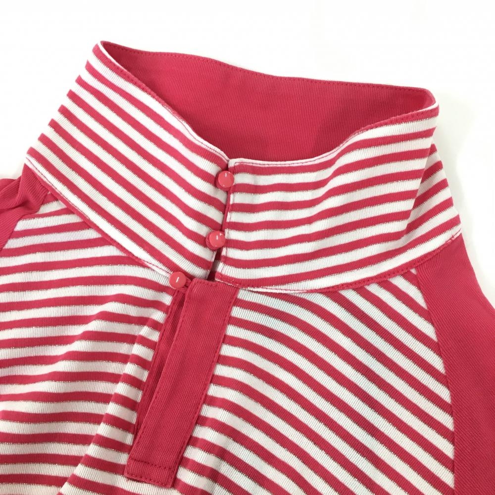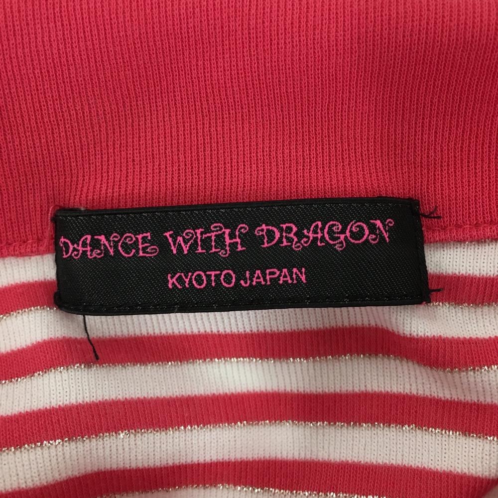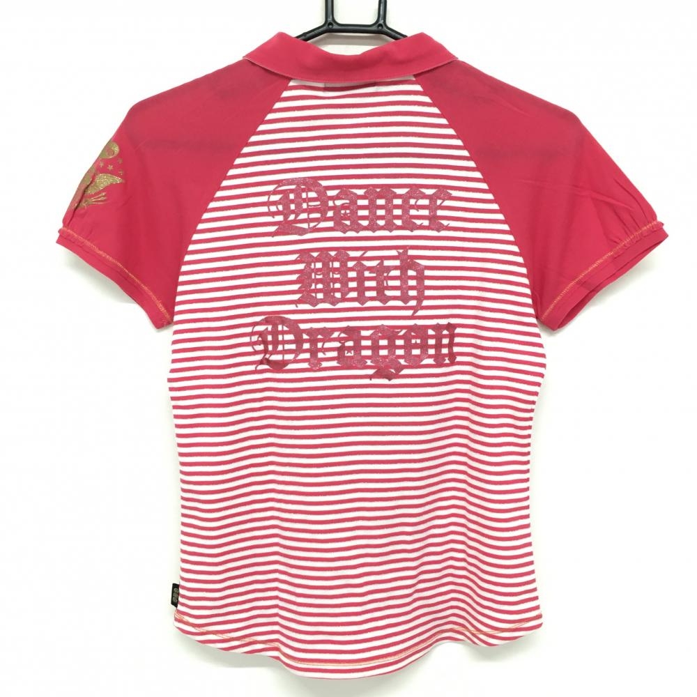 【美品】ダンスウィズドラゴン 半袖ポロシャツ ピンク×白 身頃ボーダー ラメ糸 レディース 3(L) ゴルフウェア Dance With Dragon