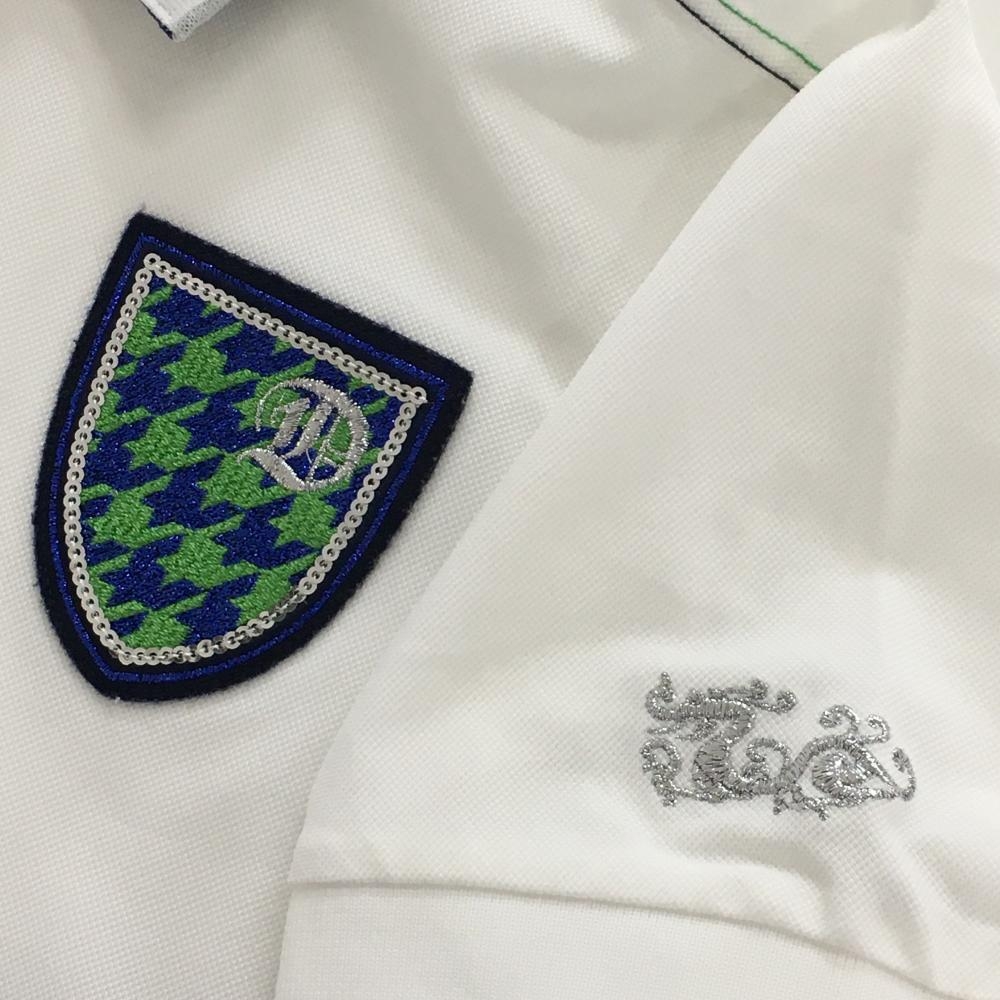 【超美品】ダンスウィズドラゴン 半袖ポロシャツ 白×グリーン×ネイビー レディース 3(L) ゴルフウェア Dance With Dragon
