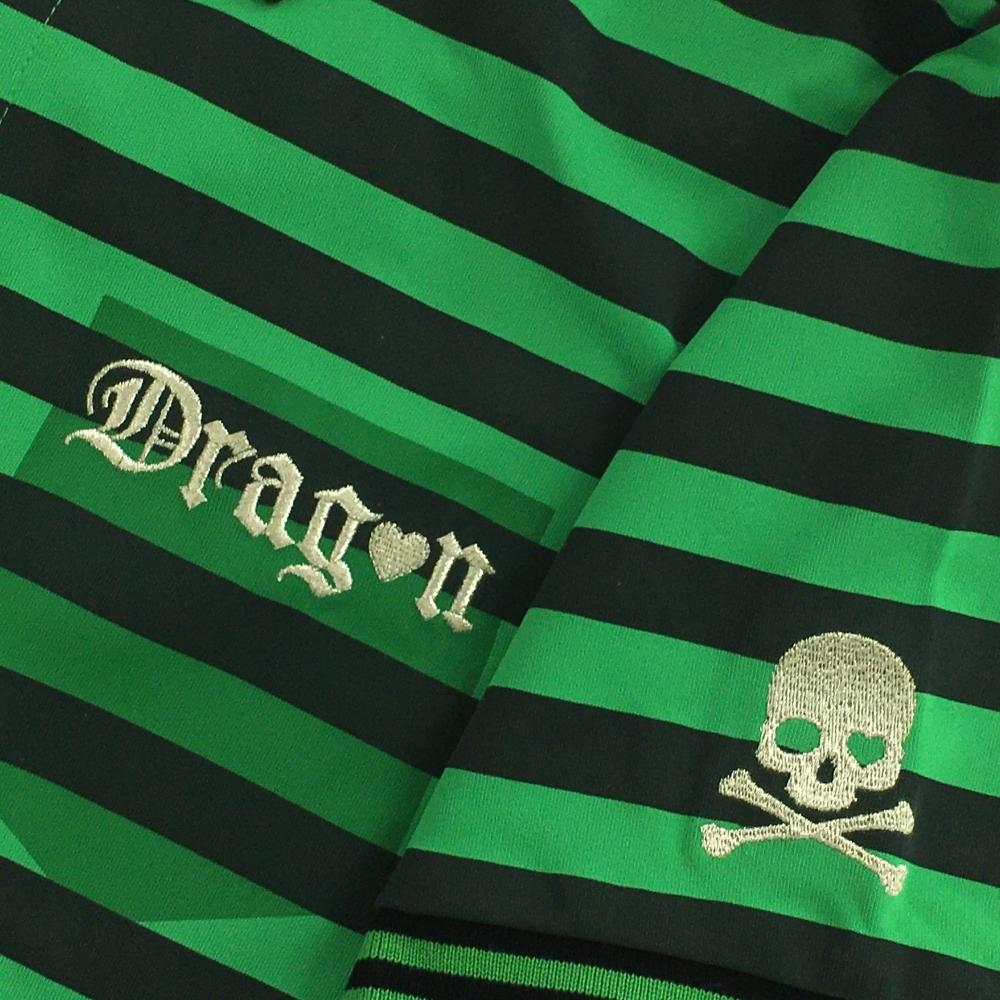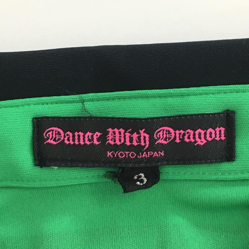 【超美品】ダンスウィズドラゴン 半袖ポロシャツ グリーン×黒 ボーダー レディース 3(L) ゴルフウェア Dance With Dragon
