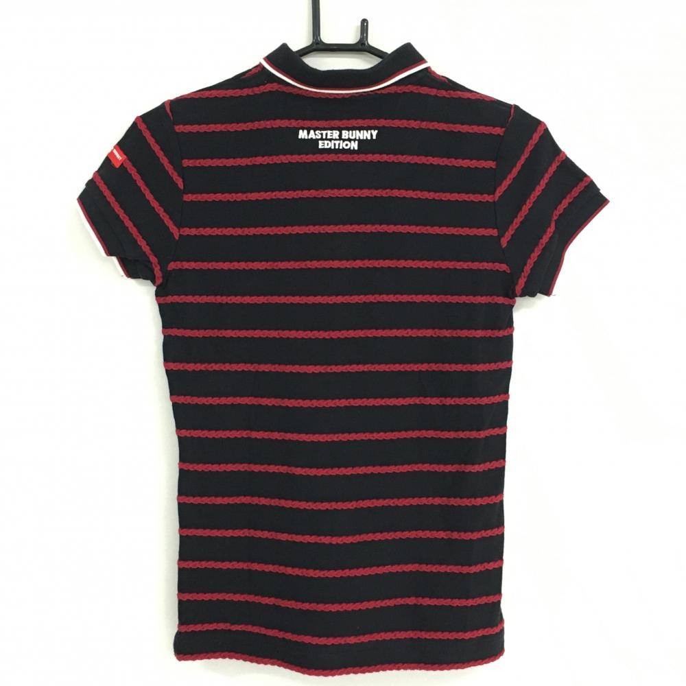 マスターバニー 半袖ポロシャツ 黒×レッド ボーダー レディース 0(S) ゴルフウェア MASTER BUNNY EDITION