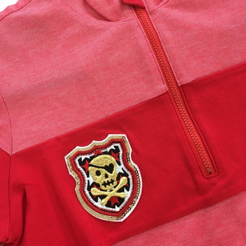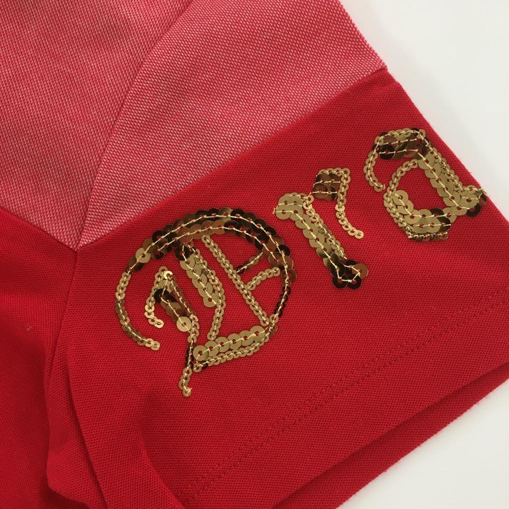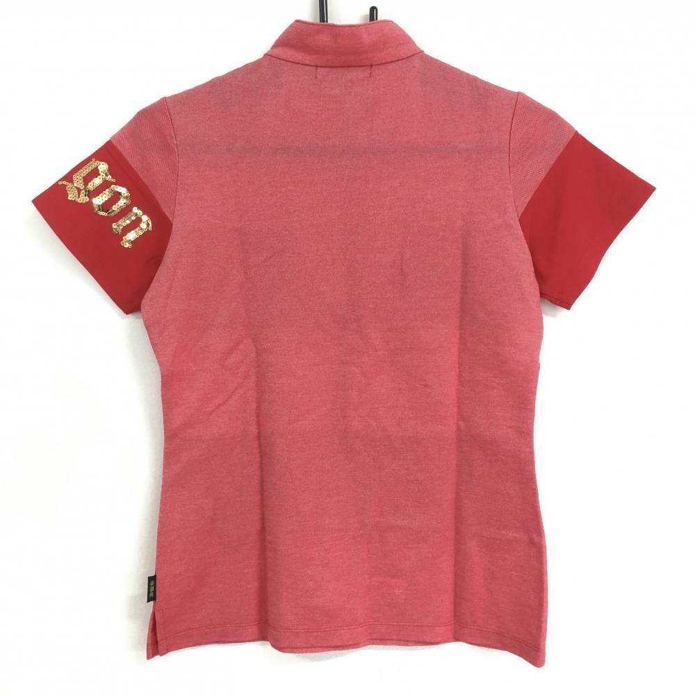 【美品】ダンスウィズドラゴン 半袖ハイネックシャツ レッド 前太ボーダー ハーフジップ レディース 2(M) ゴルフウェア Dance With Dragon