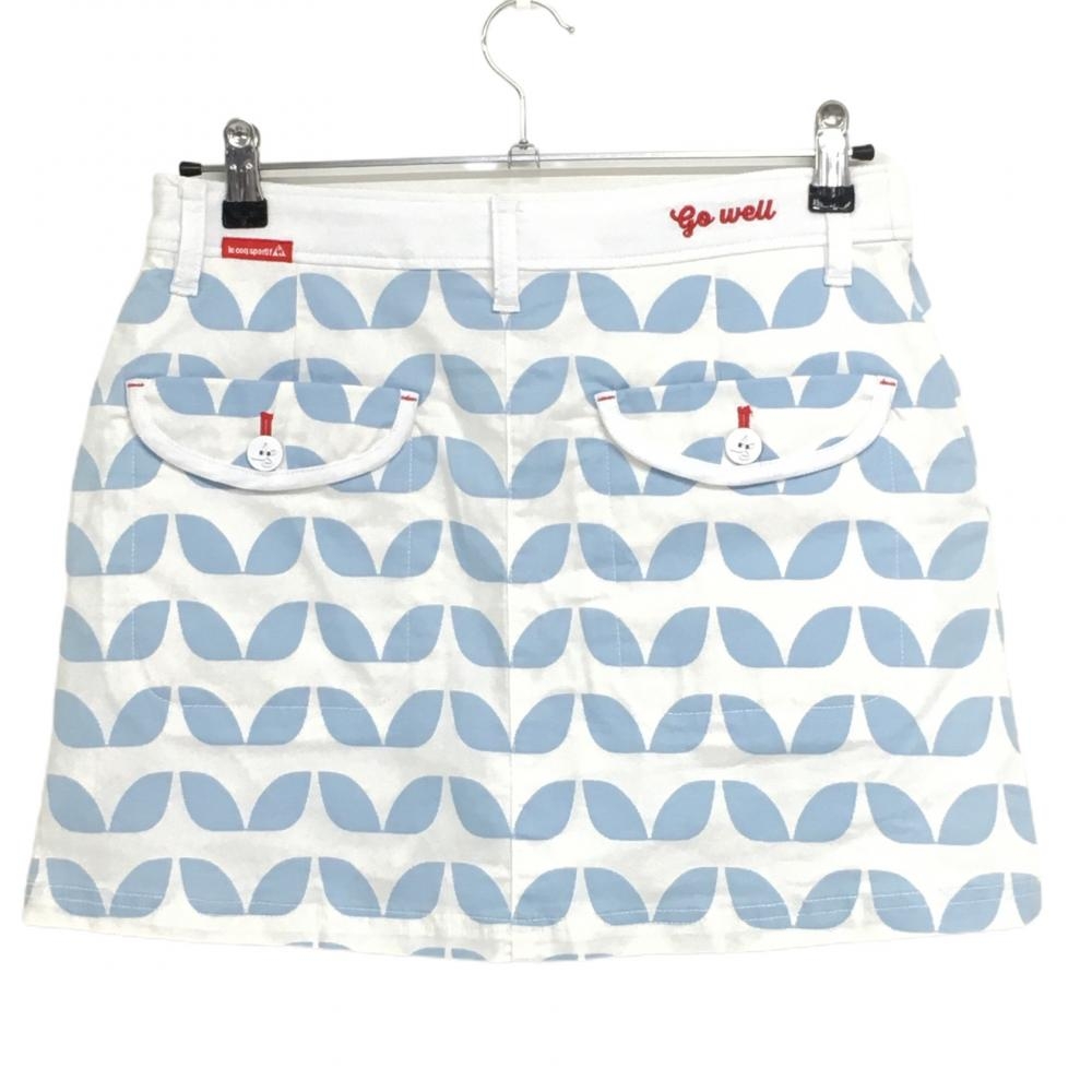 ルコック スカート 白×ライトブルー 総柄 てんとう虫刺しゅう ストレッチ 内側インナーパンツ レディース 11 ゴルフウェア le coq sportif