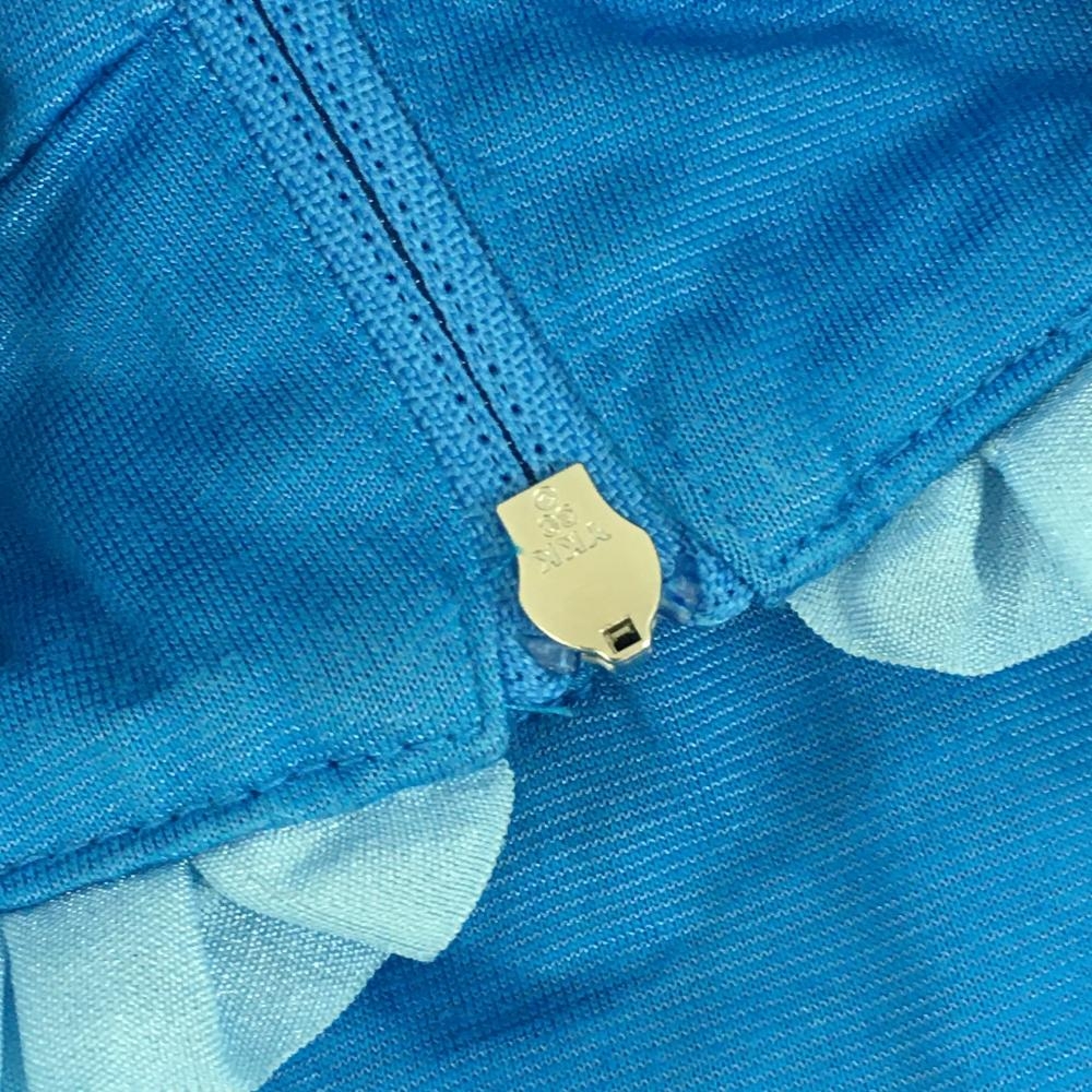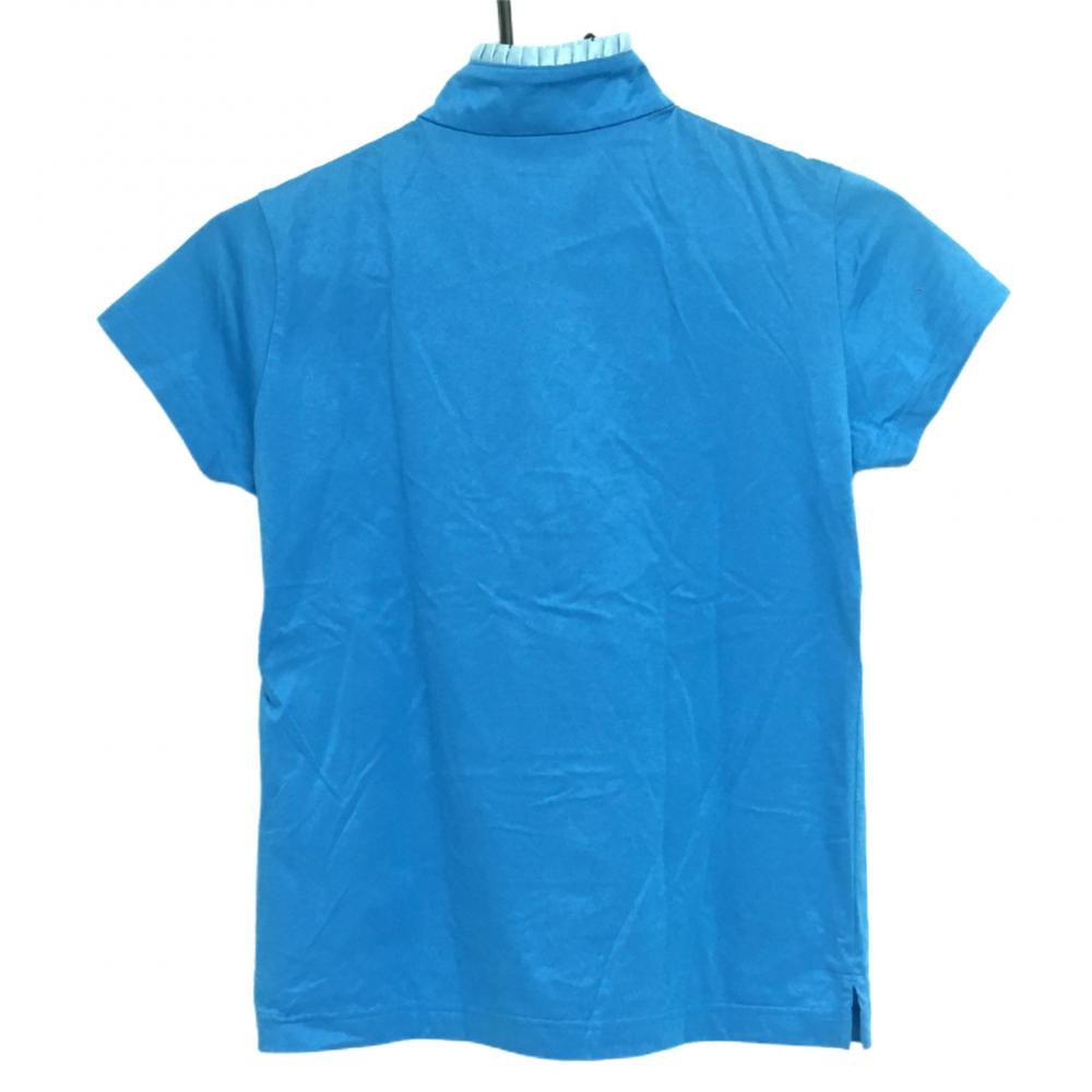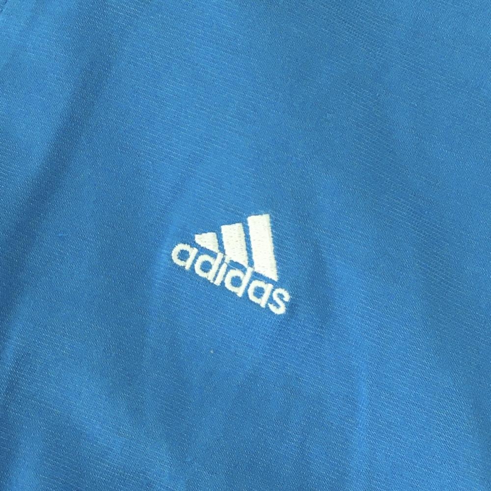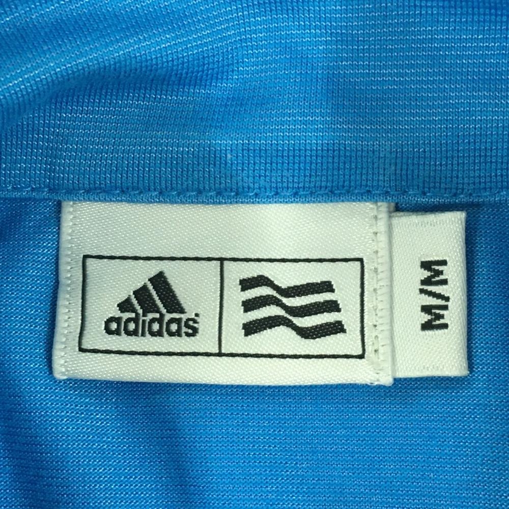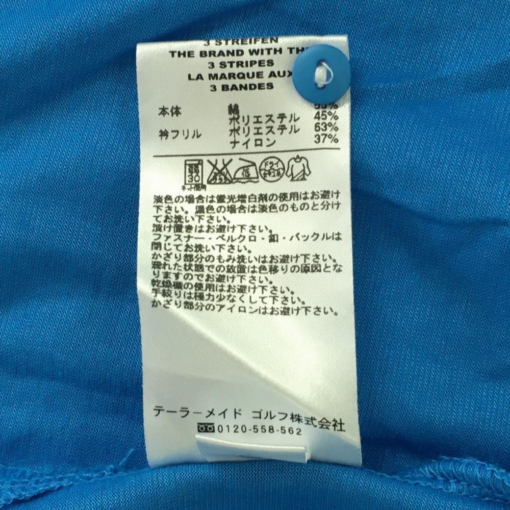 【美品】アディダス 半袖ハイネックシャツ ブルー ネックフリル ハーフジップ レディース M/M ゴルフウェア adidas