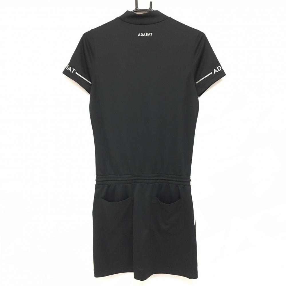 アダバット 半袖ハイネックワンピース 黒 ロゴプリント ウエスト紐 レディース 36(S) ゴルフウェア adabat