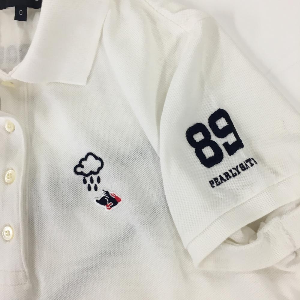 パーリーゲイツ 半袖ポロシャツ 白×ネイビー ロゴ刺しゅう レディース 0(S) ゴルフウェア PEARLY GATES