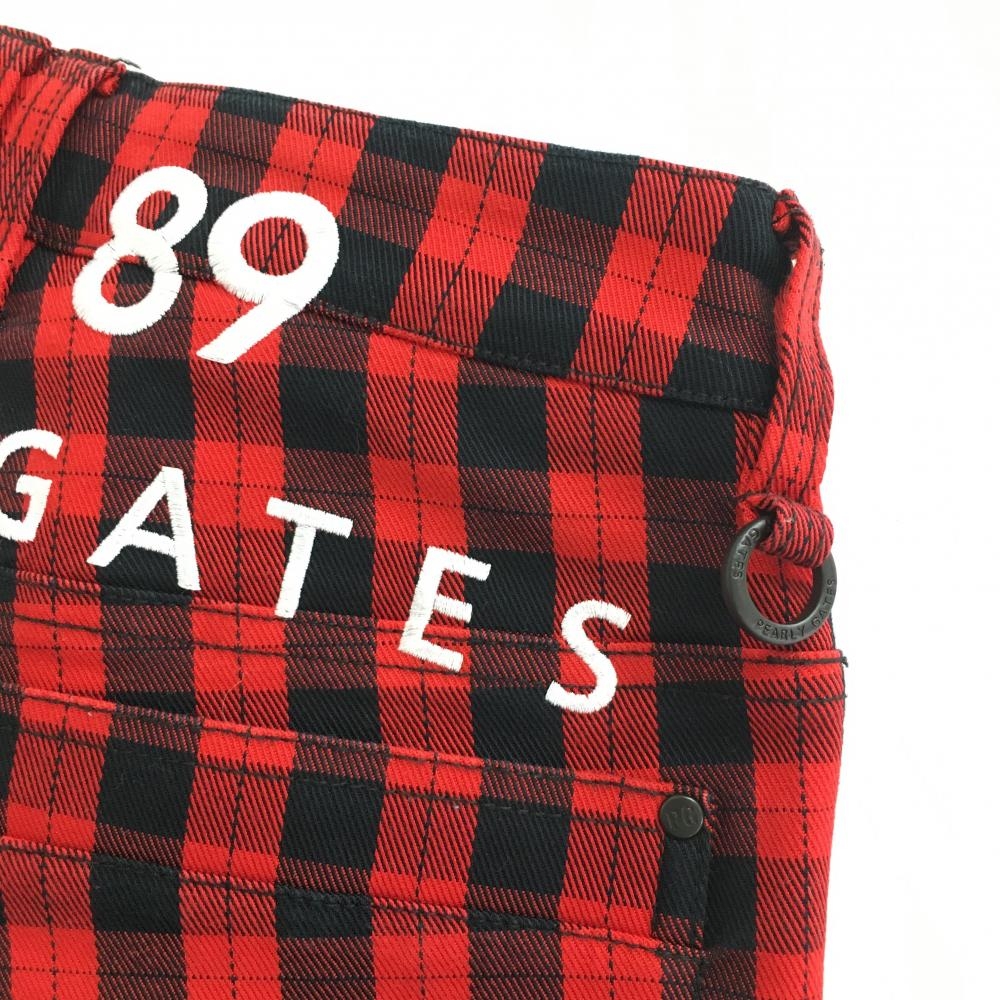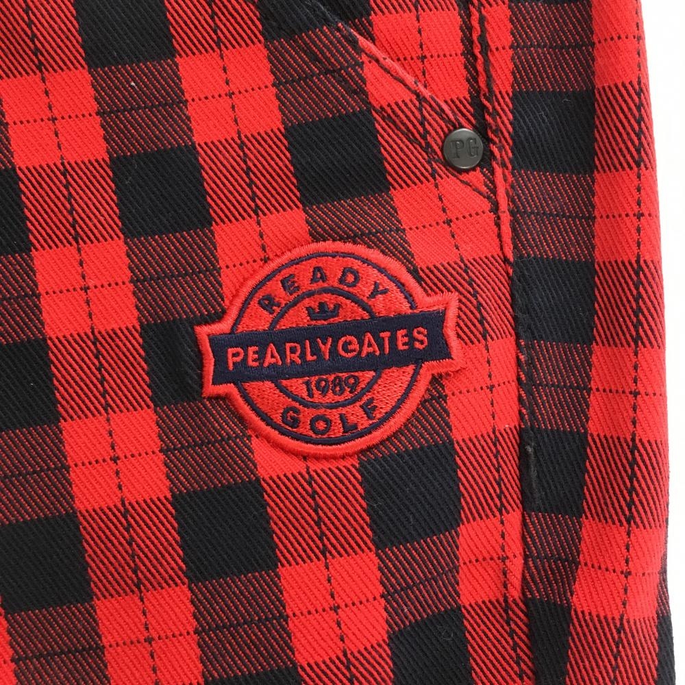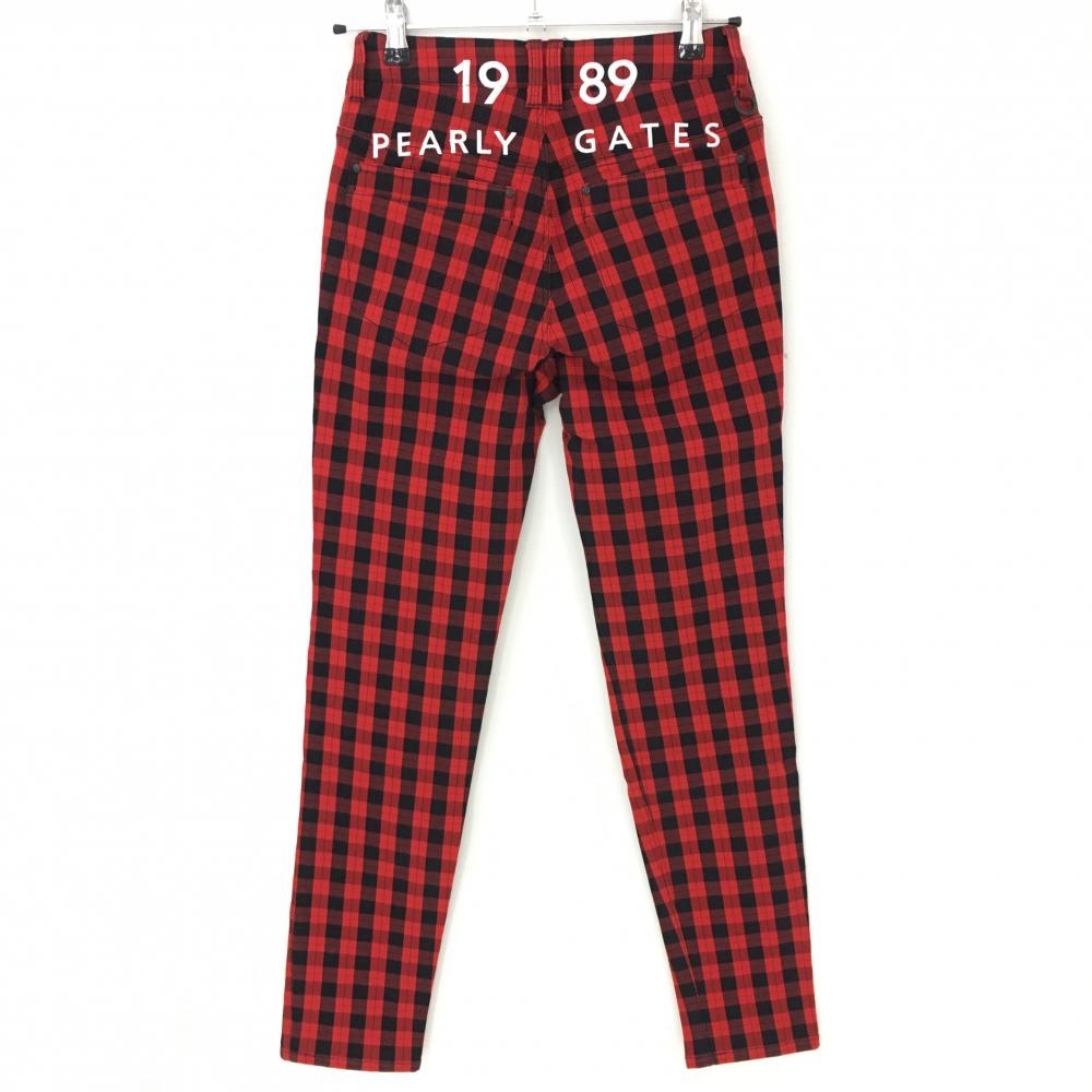 【超美品】パーリーゲイツ パンツ レッド×黒 チェック 後ロゴ刺しゅう レディース 00(XS) ゴルフウェア PEARLY GATES