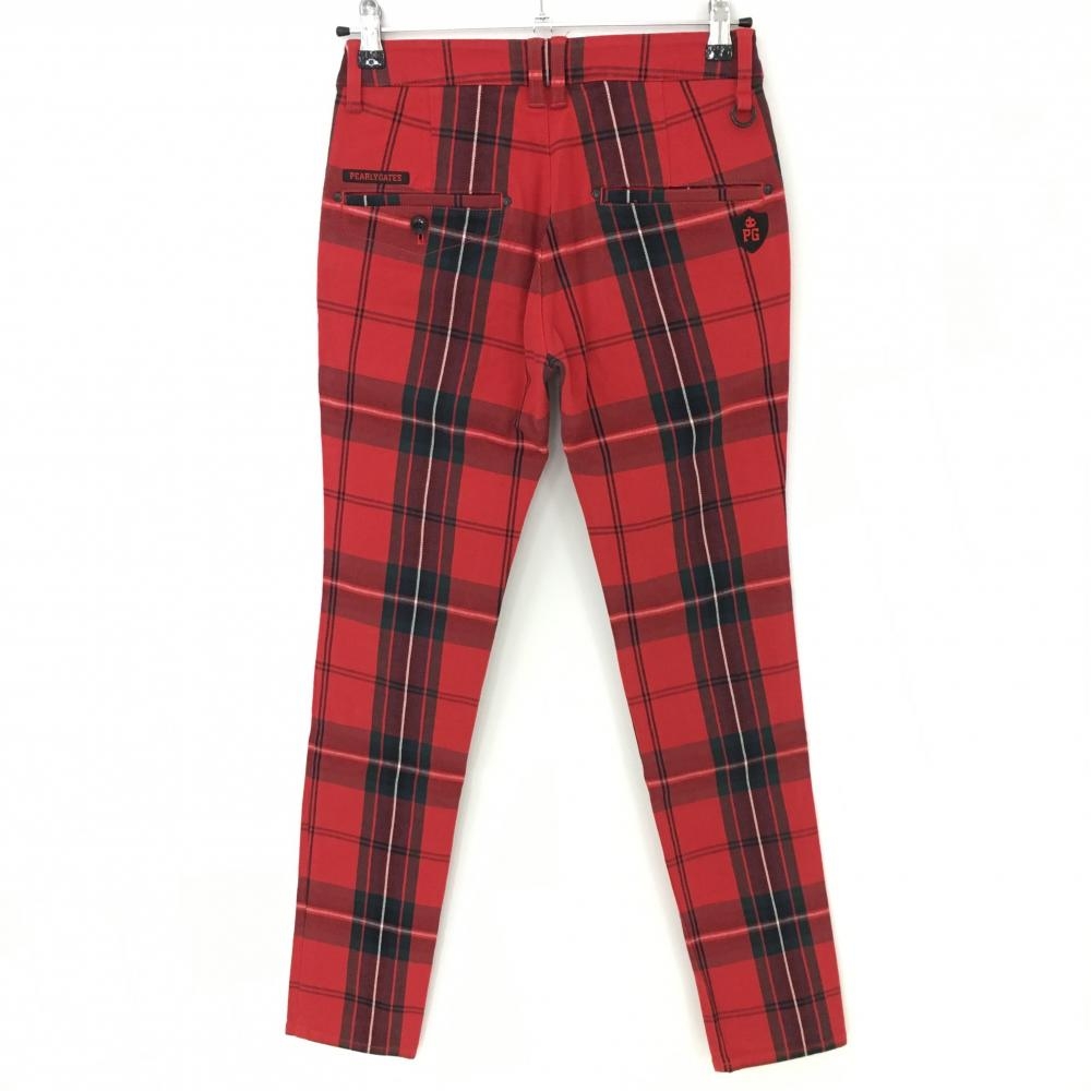 【美品】パーリーゲイツ パンツ レッド×黒 チェック レディース 00(XS) ゴルフウェア PEARLY GATES