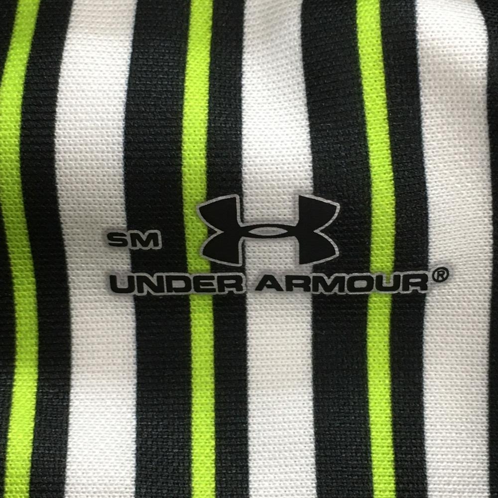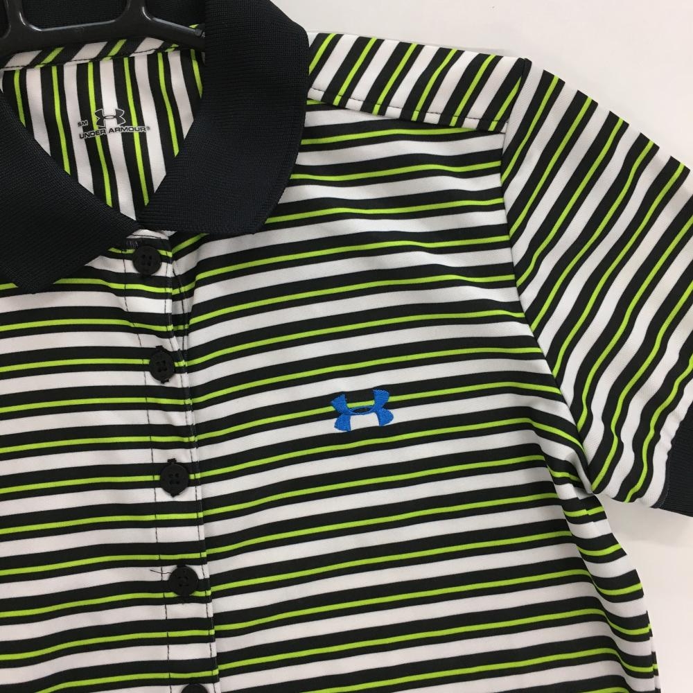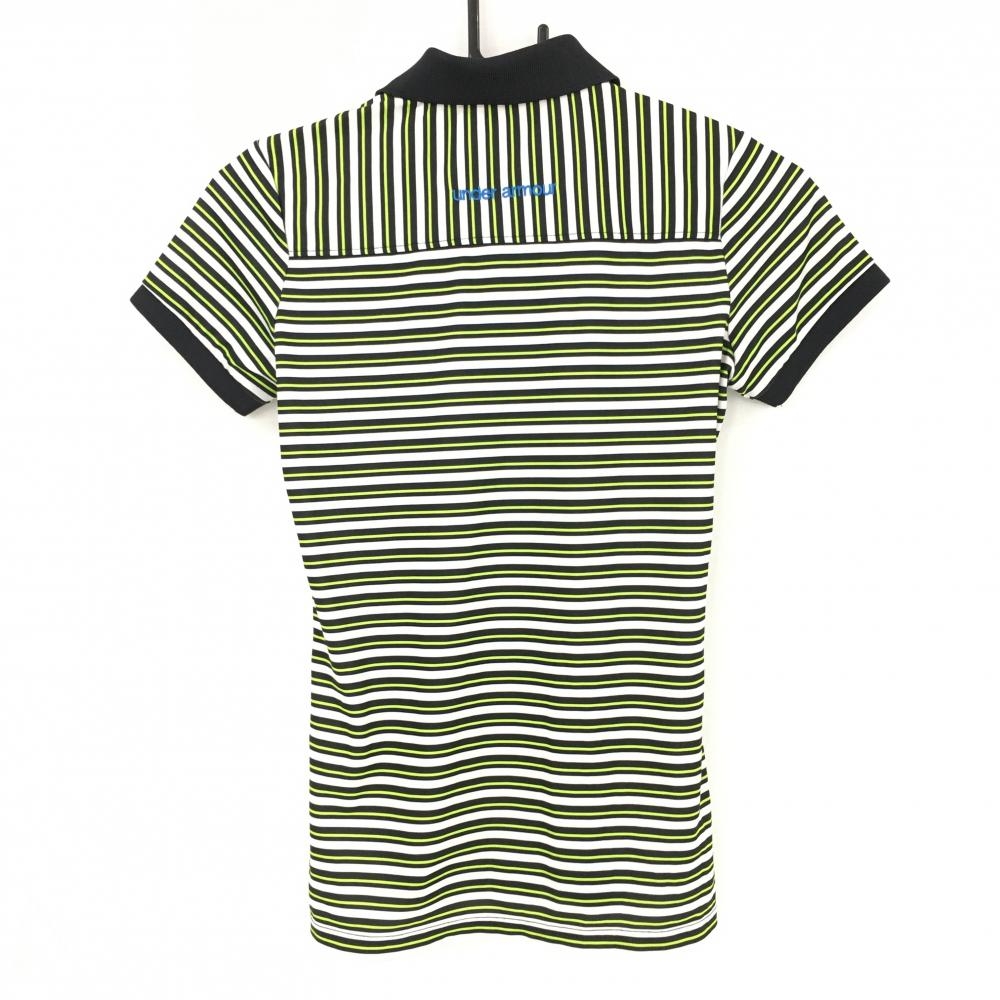 【超美品】アンダーアーマー 半袖ポロシャツ 白×黒×ライトグリーン ボーダー レディース SM ゴルフウェア UNDER ARMOUR