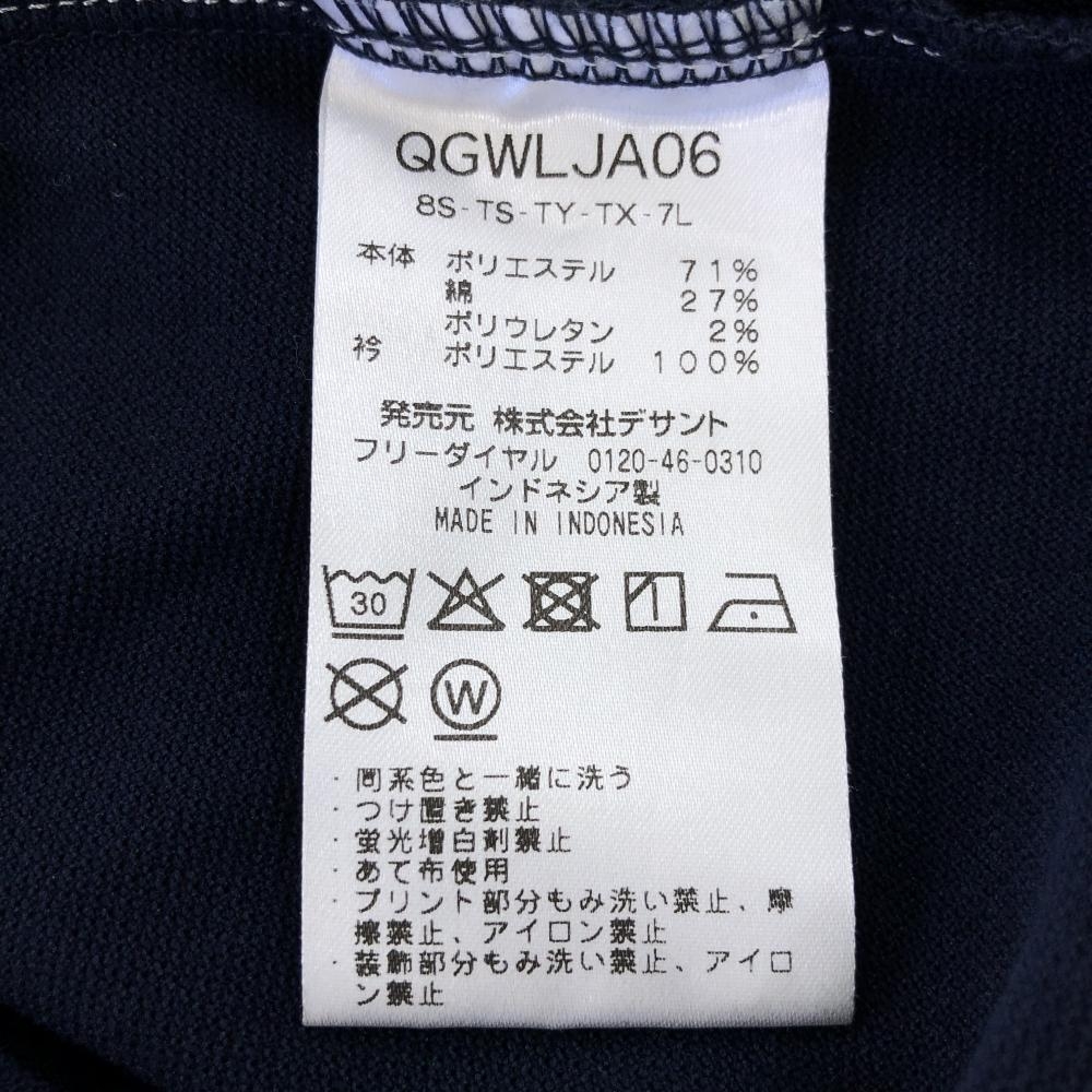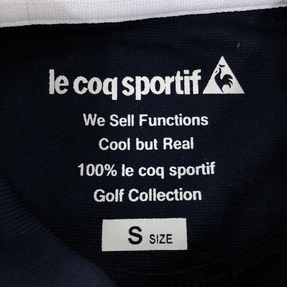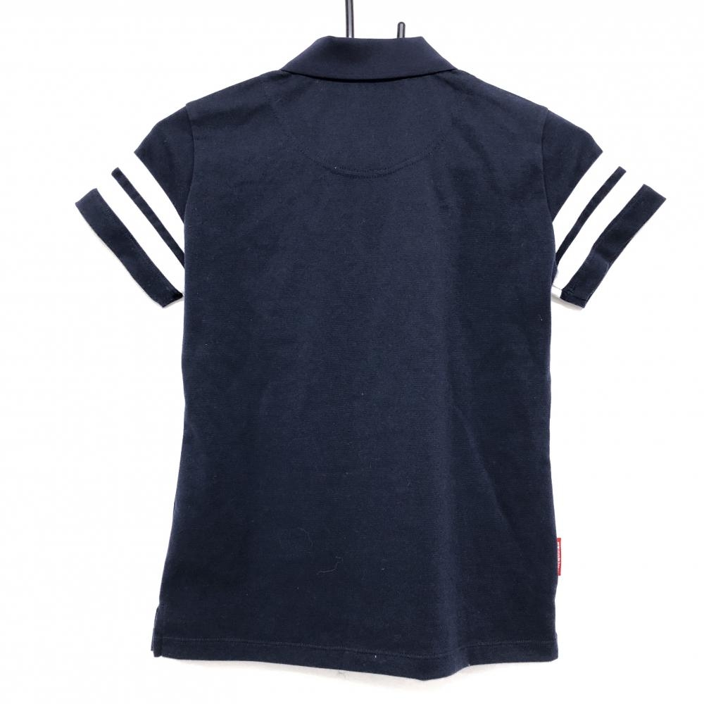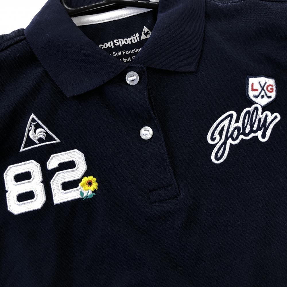 【超美品】ルコック 半袖ポロシャツ ネイビー×白 袖2ライン 花刺しゅう レディース S ゴルフウェア le coq sportif