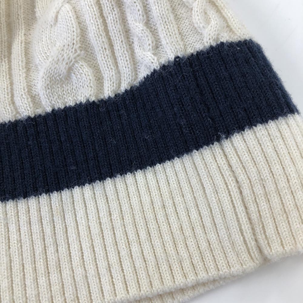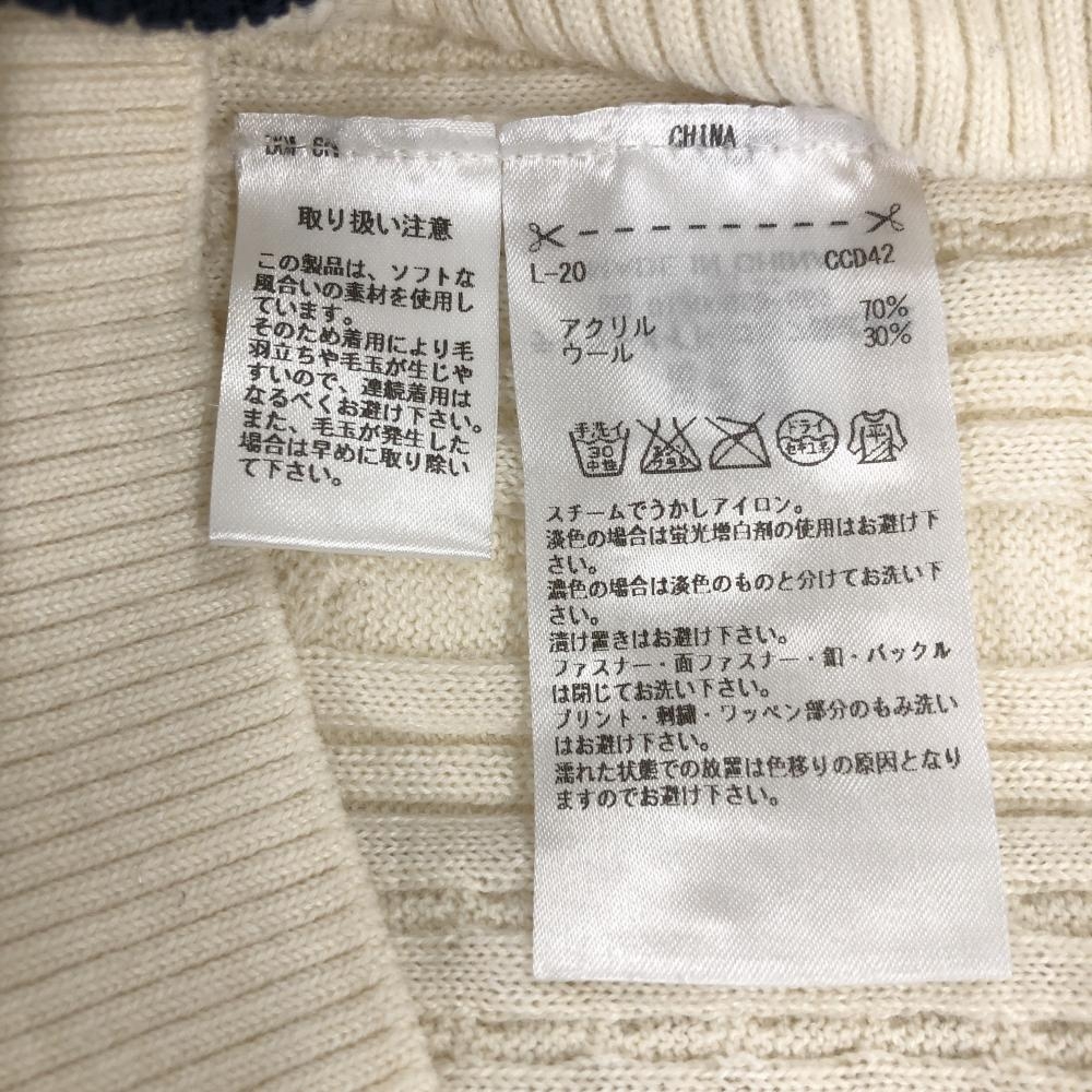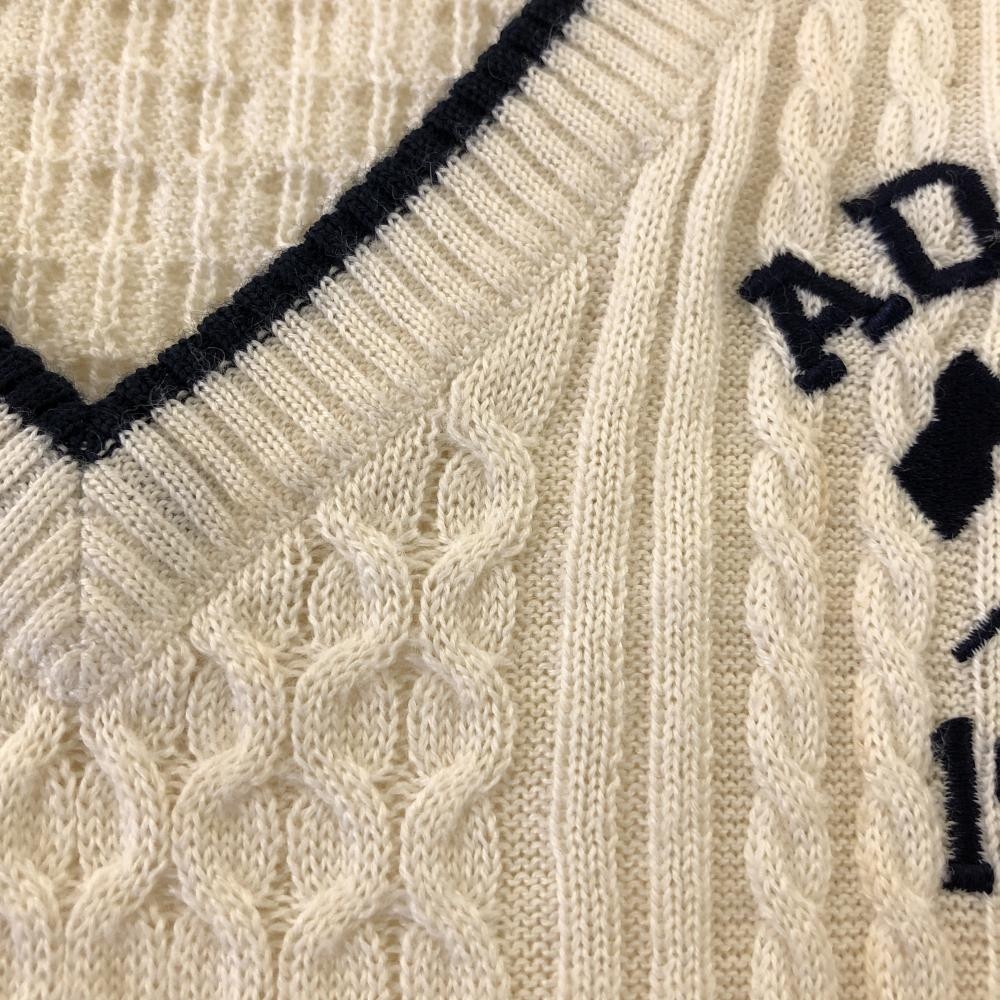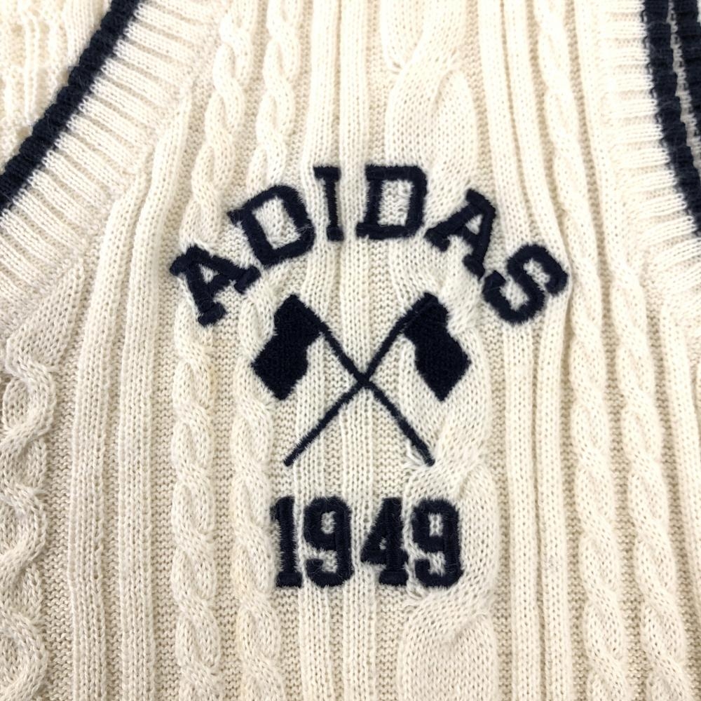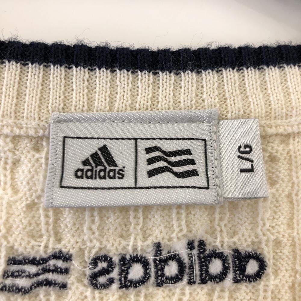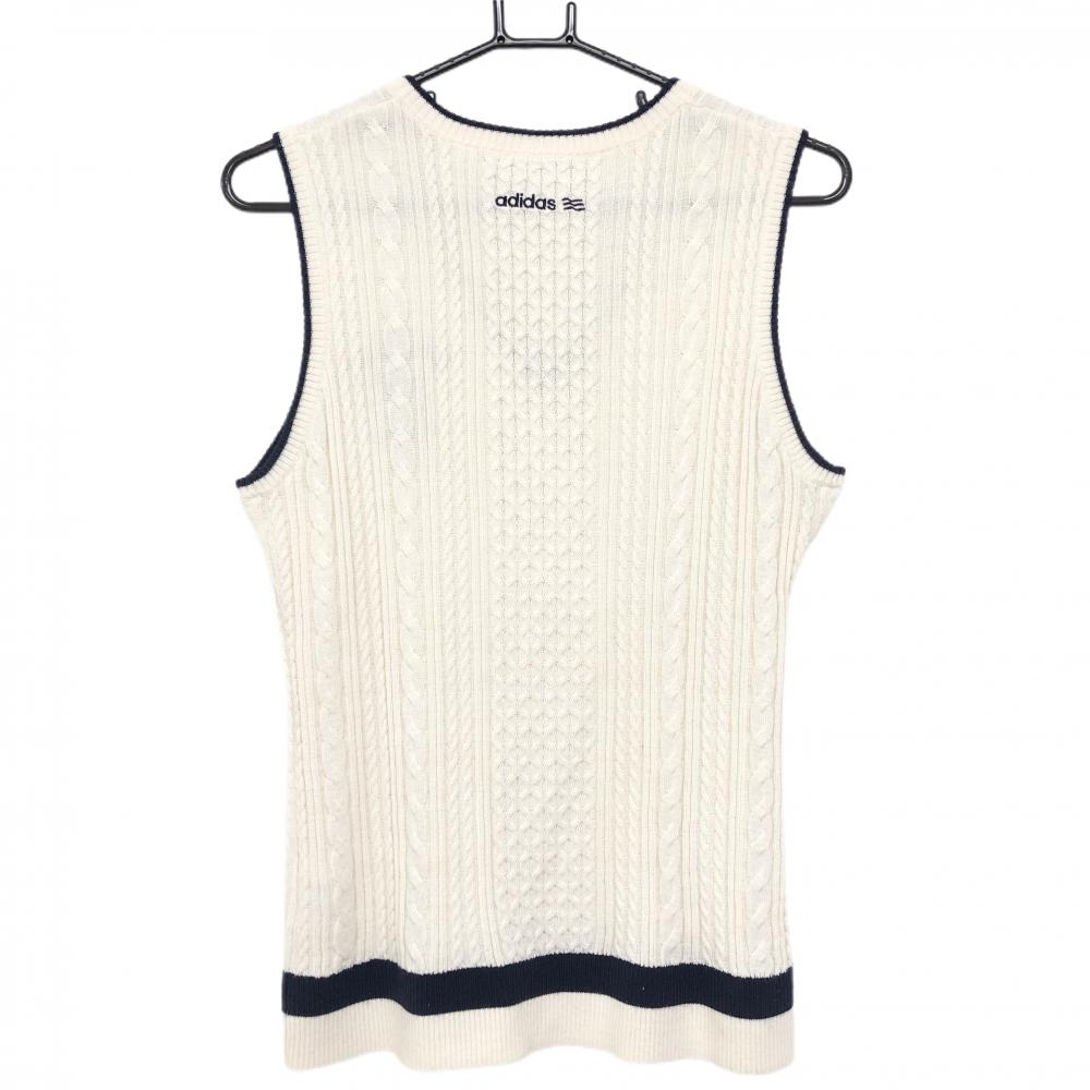 アディダス ニットベスト 白×ネイビー ケーブル編み Vネック ウール混 レディース L/G ゴルフウェア adidas