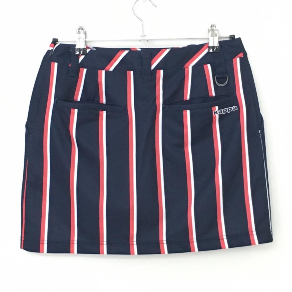 【超美品】カッパ スカート ネイビー×ピンク ストライプ柄 ロゴ刺しゅう レディース L ゴルフウェア Kappa