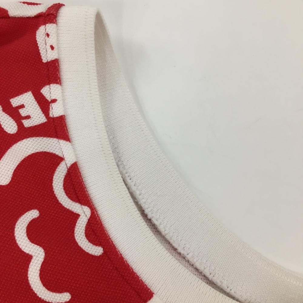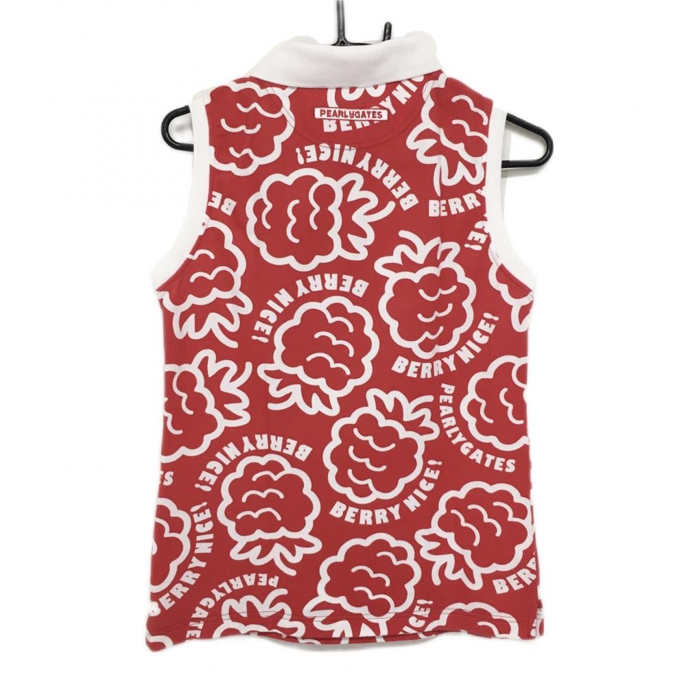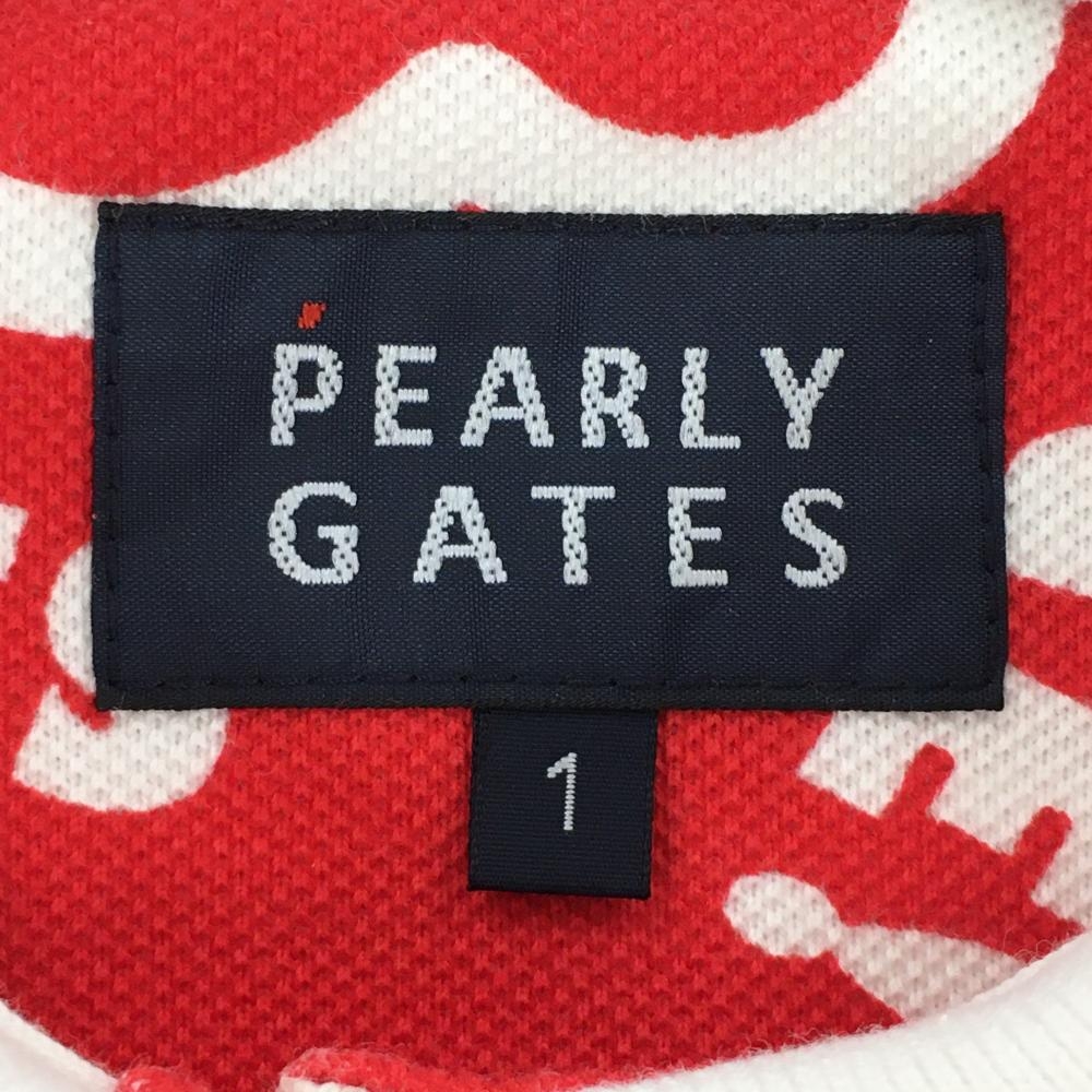 【美品】パーリーゲイツ ノースリーブポロシャツ レッド×白 総柄 コットン100% レディース 1(M) ゴルフウェア PEARLY GATES