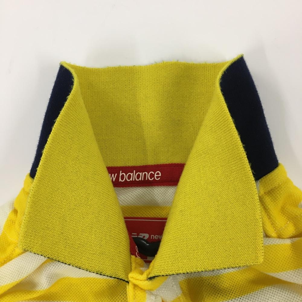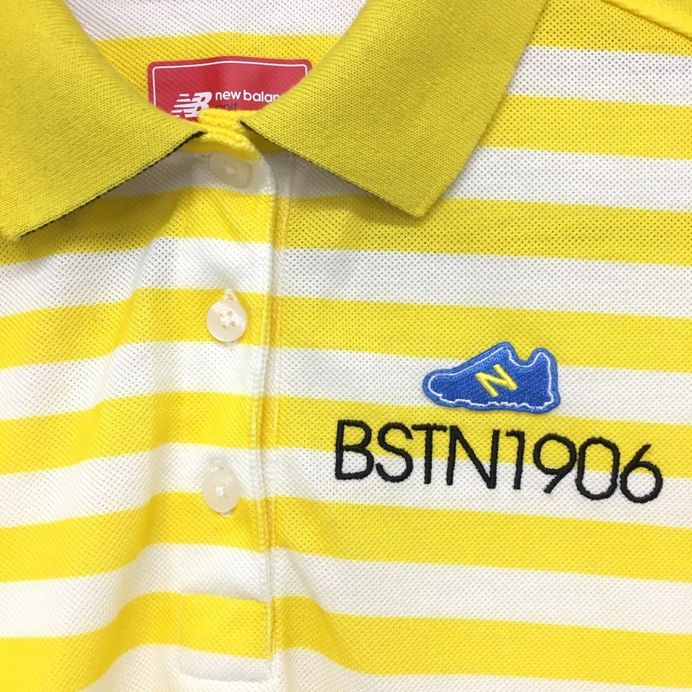 【美品】ニューバランスゴルフ 半袖ポロシャツ イエロー×アイボリー ボーダー柄 レディース 1(M) ゴルフウェア New Balance