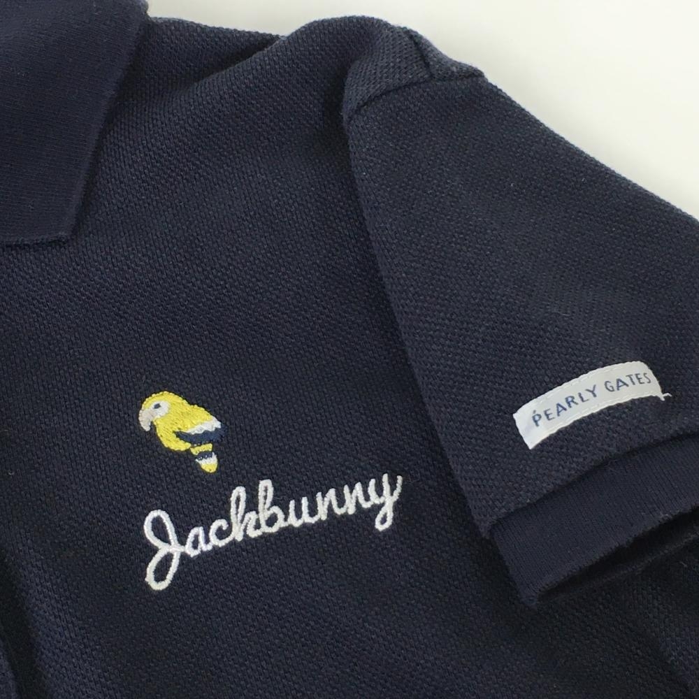 ジャックバニー 半袖ポロシャツ ネイビー×イエロー インコ柄 ロゴ刺しゅう レディース 0(S) ゴルフウェア Jack Bunny