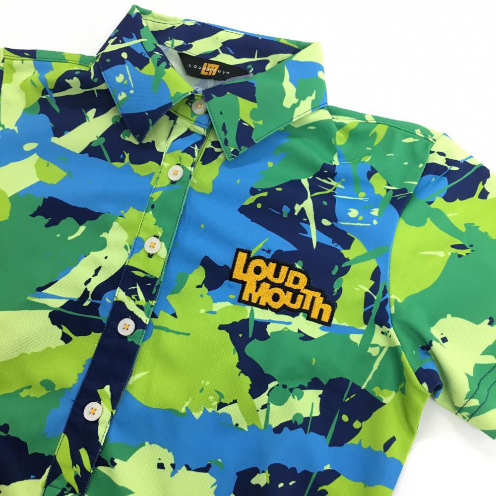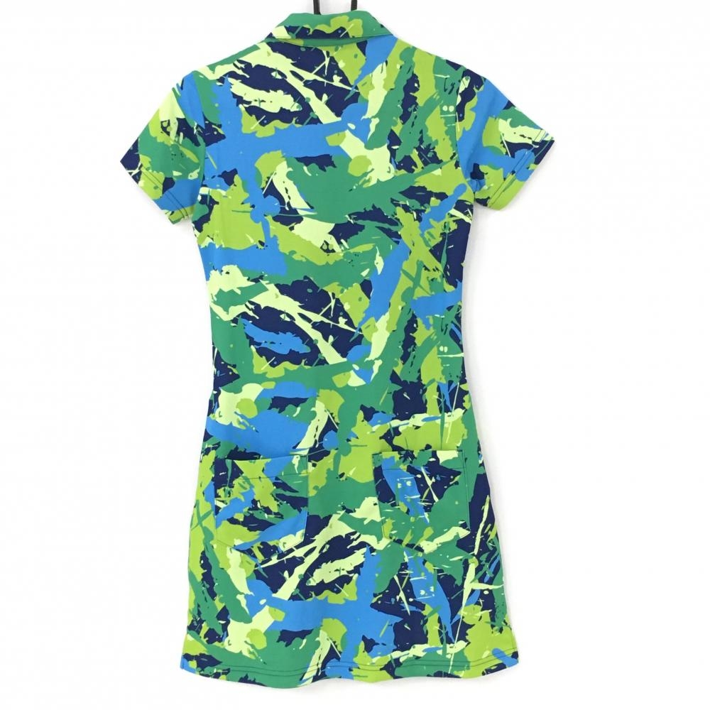 【超美品】ラウドマウス 半袖ポロワンピース グリーン×ネイビー 総柄 グランドアンダーリペア― レディース S ゴルフウェア LOUDMOUTH