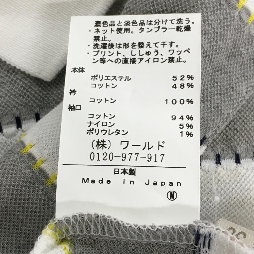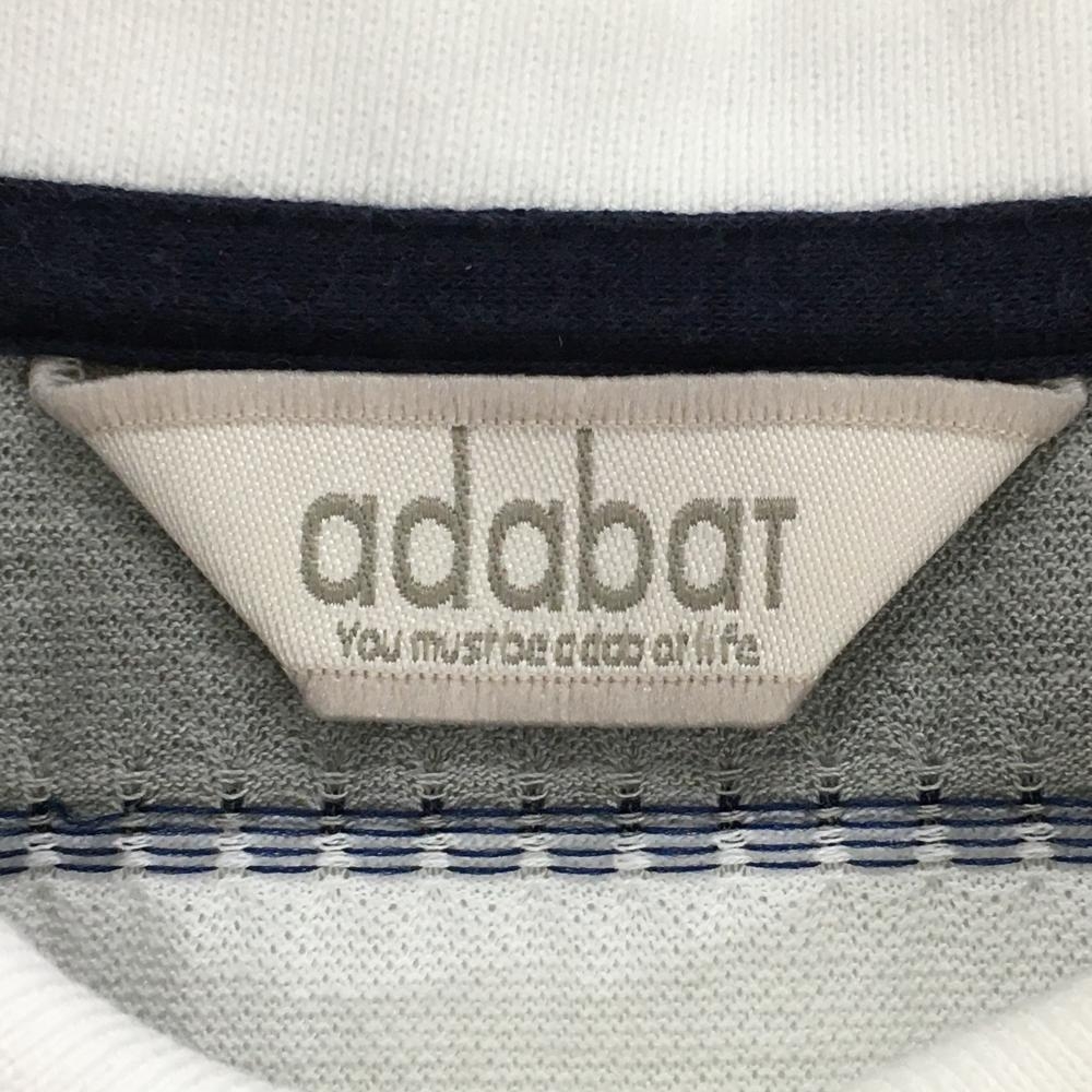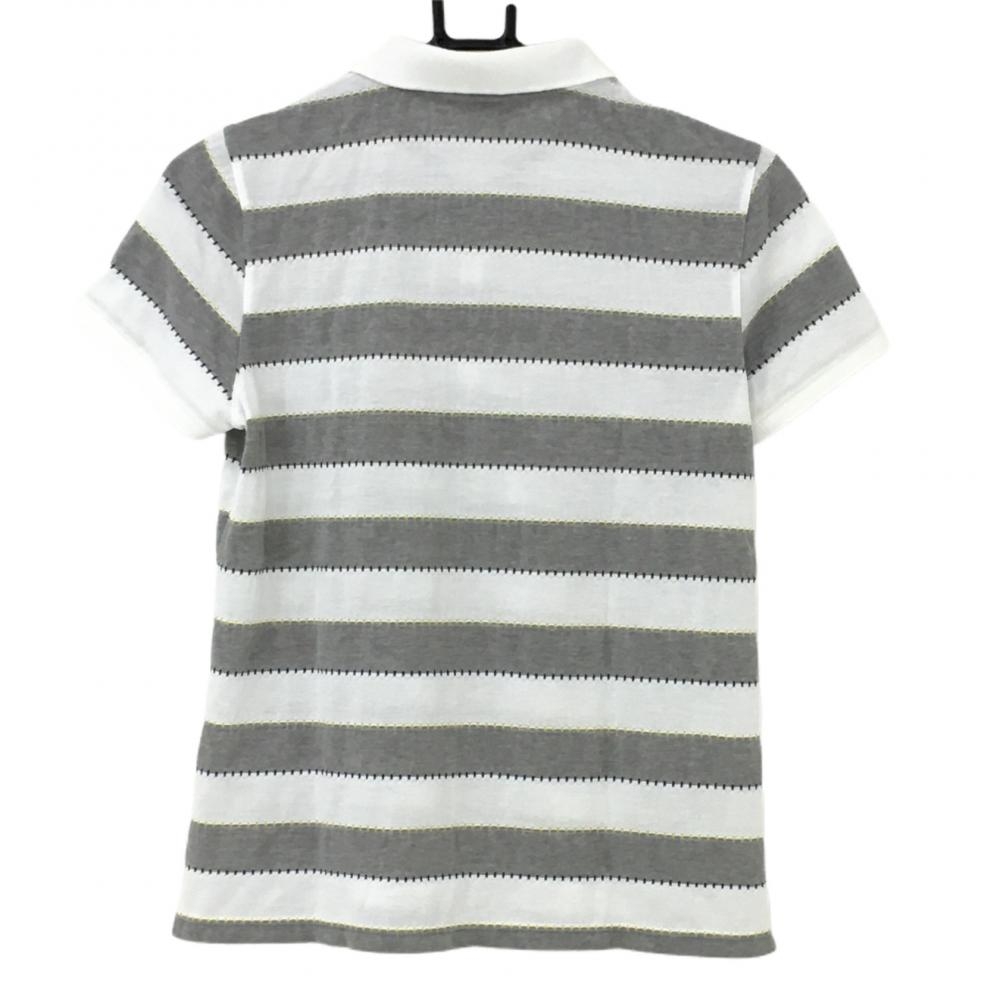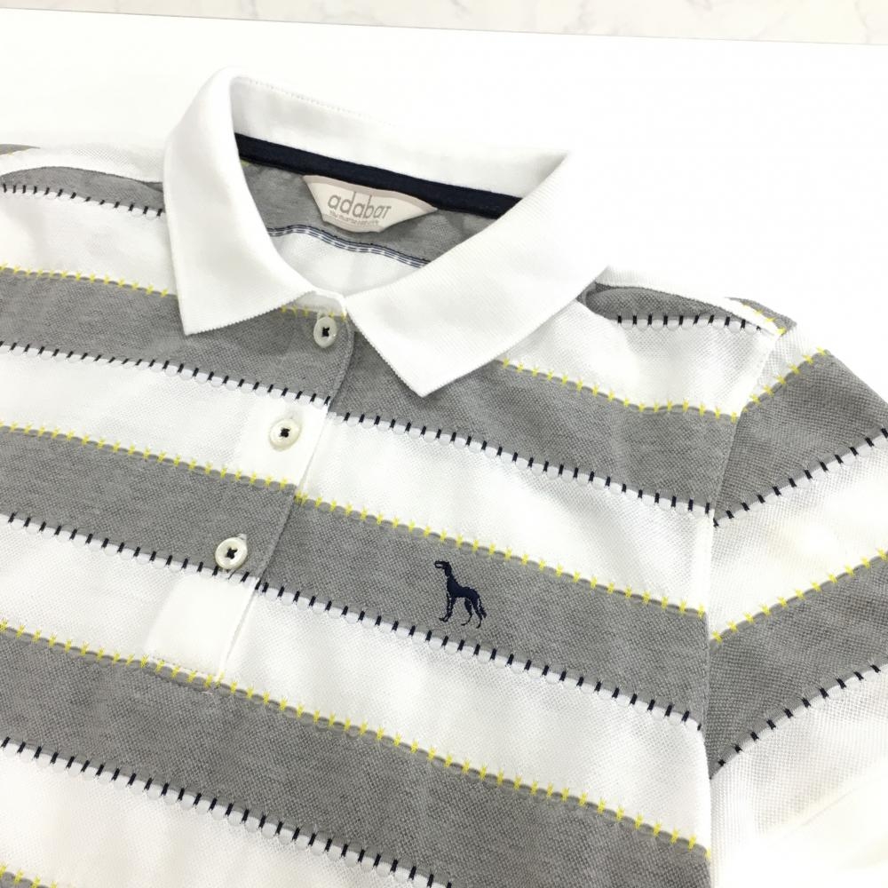 アダバット 半袖ポロシャツ 白×グレー ボーダー ロゴ刺しゅう レディース 38(M) ゴルフウェア adabat