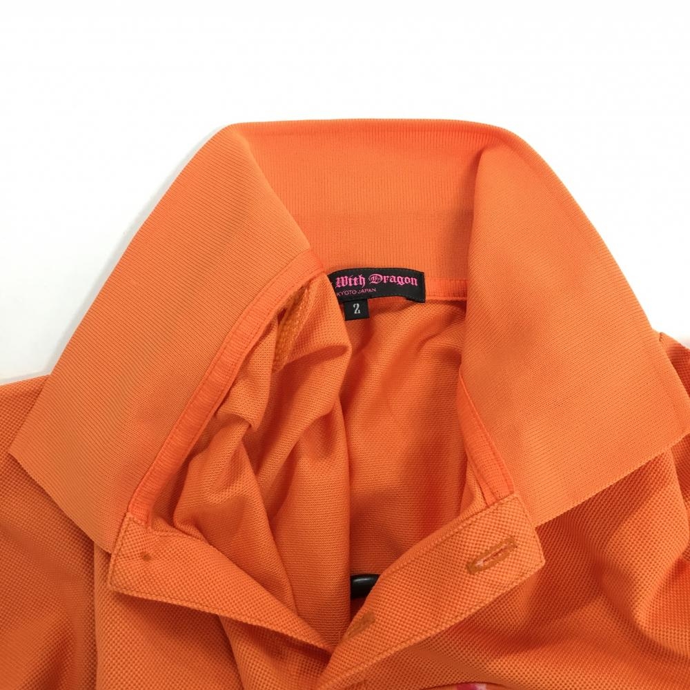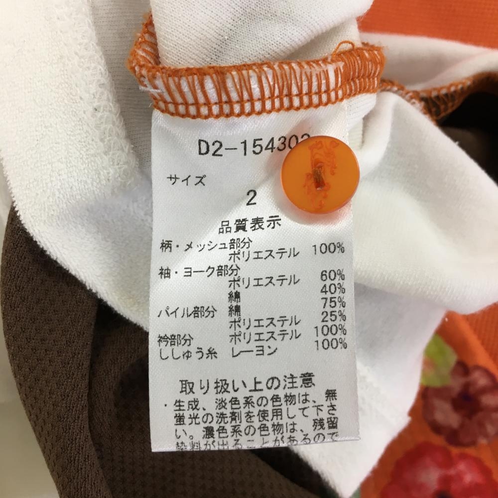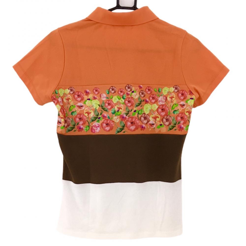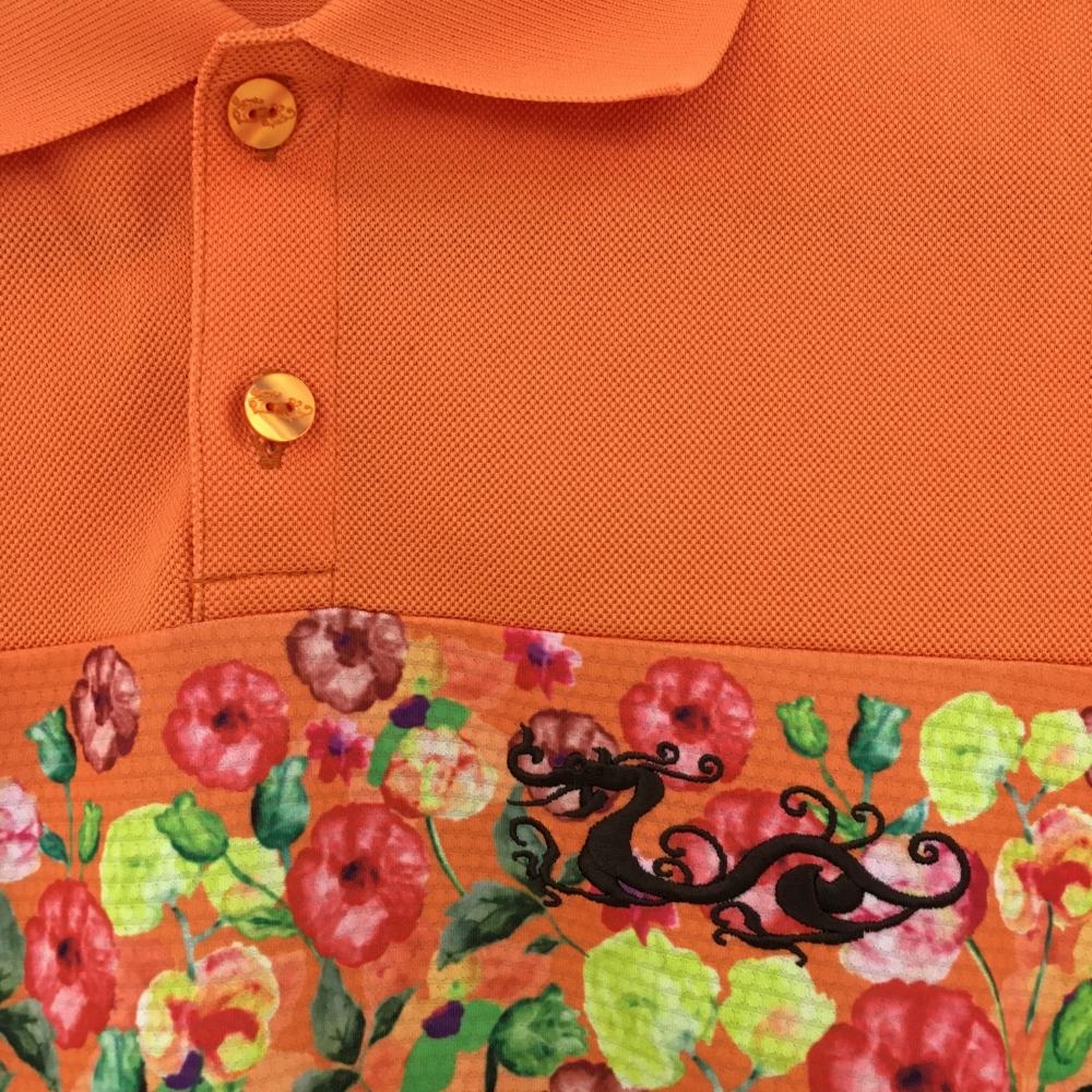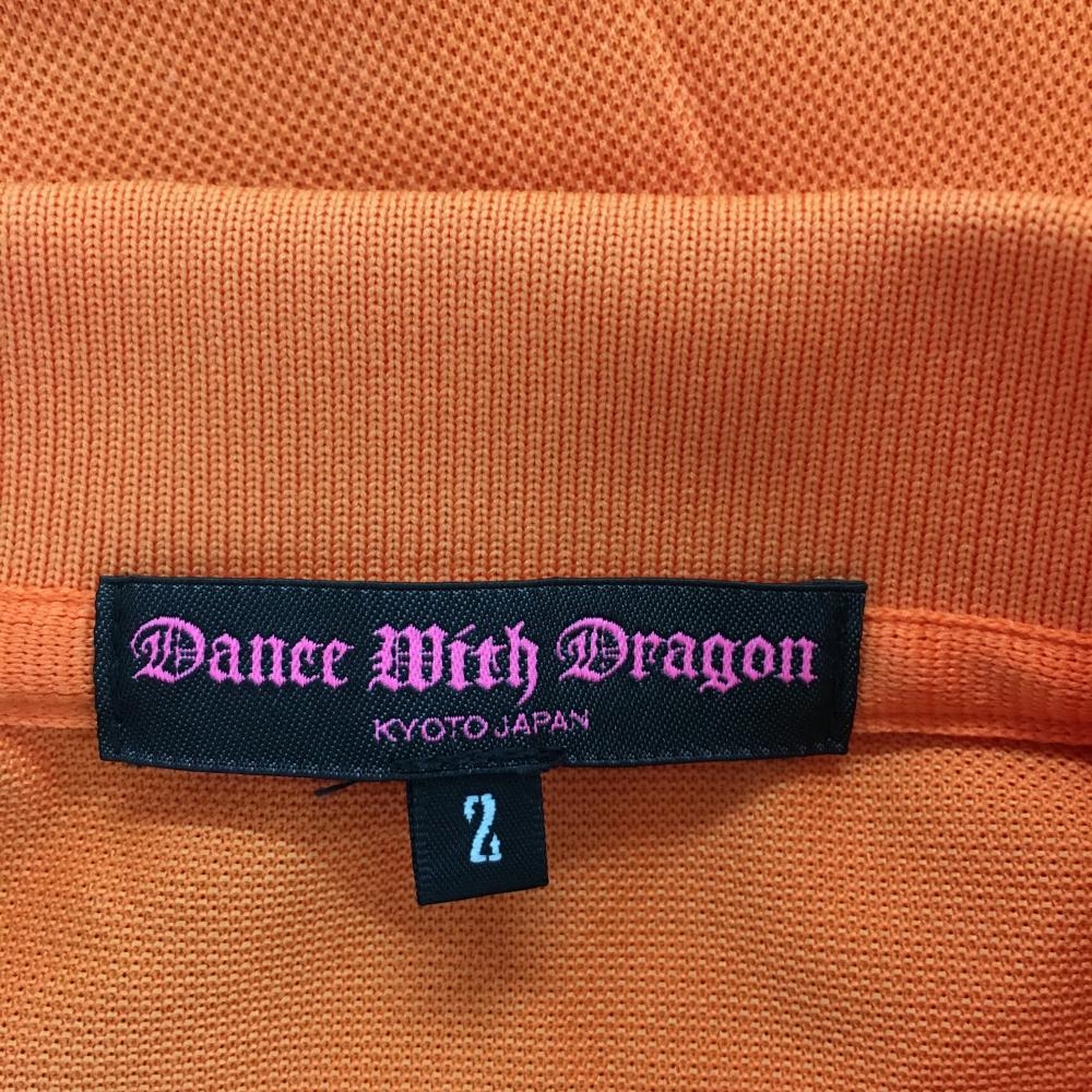【美品】ダンスウィズドラゴン 半袖ポロシャツ オレンジ×ブラウン 一部花柄 パイル地 レディース 2(M) ゴルフウェア Dance With Dragon