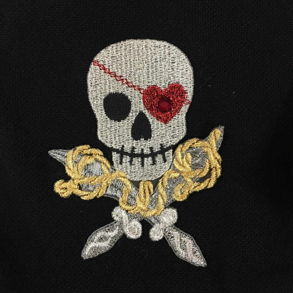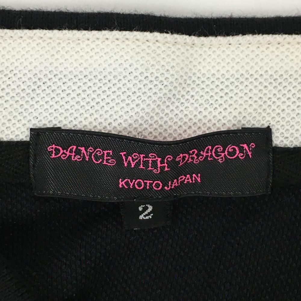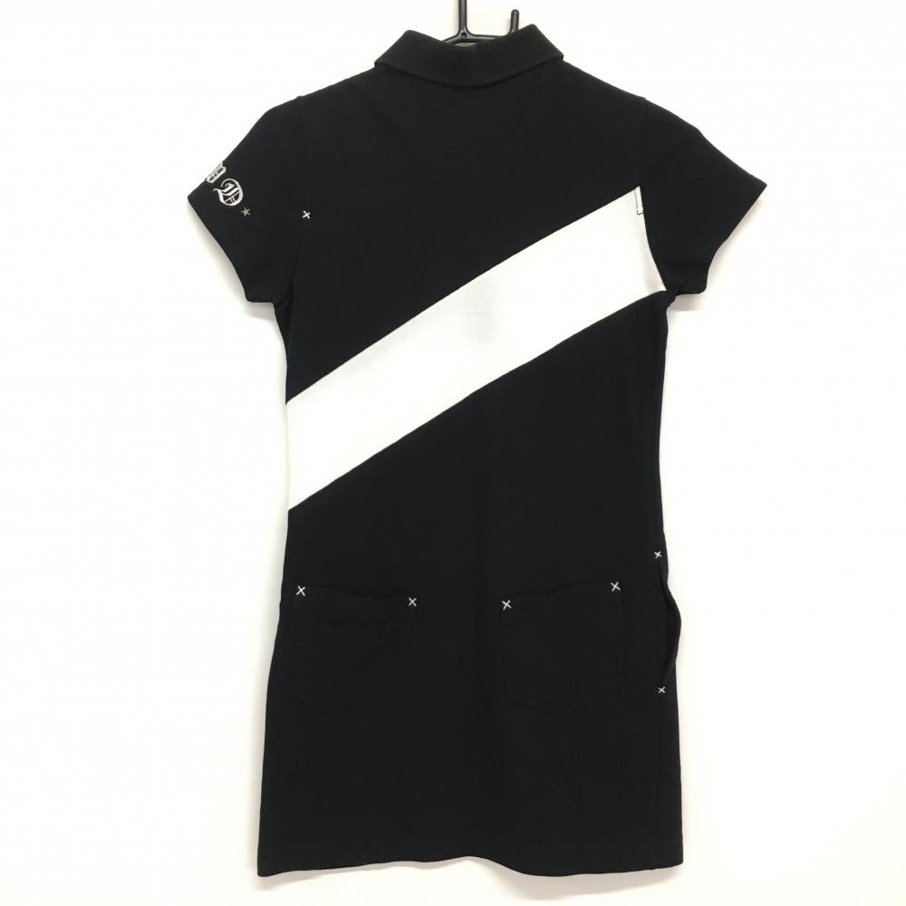 ダンスウィズドラゴン 半袖ポロワンピース 黒×白 スカル刺しゅう 斜め切替 レディース 2(M) ゴルフウェア Dance With Dragon