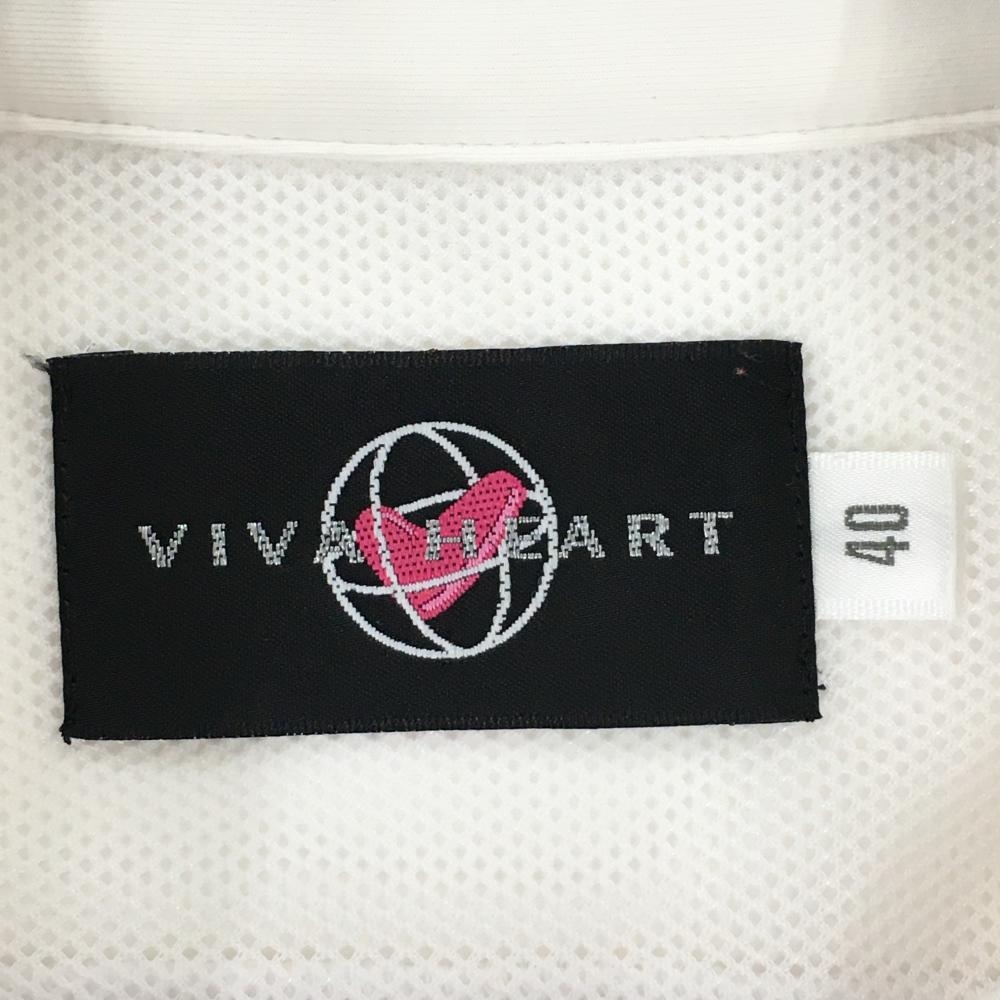 【美品】ビバハート 半袖ポロシャツ 白×ピンク 前面ハート柄 ボタンダウン レディース 40(M) ゴルフウェア VIVA HEART