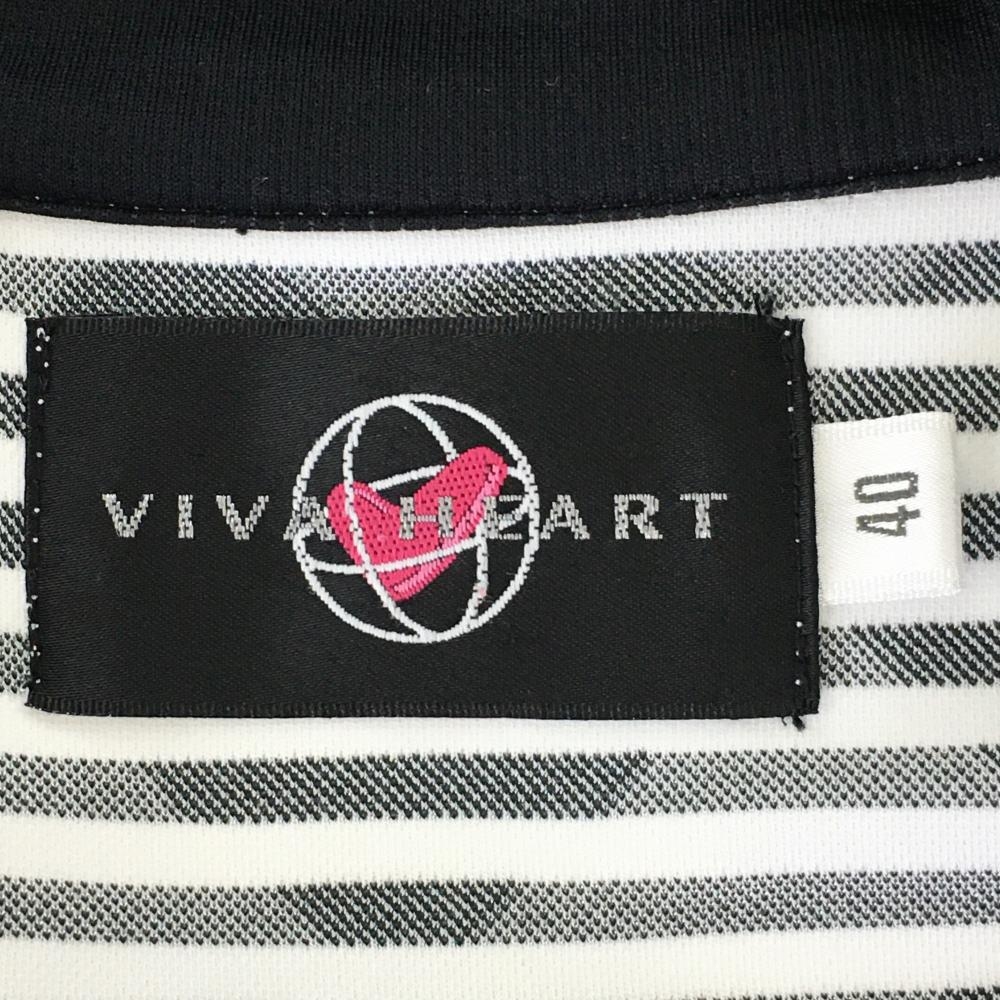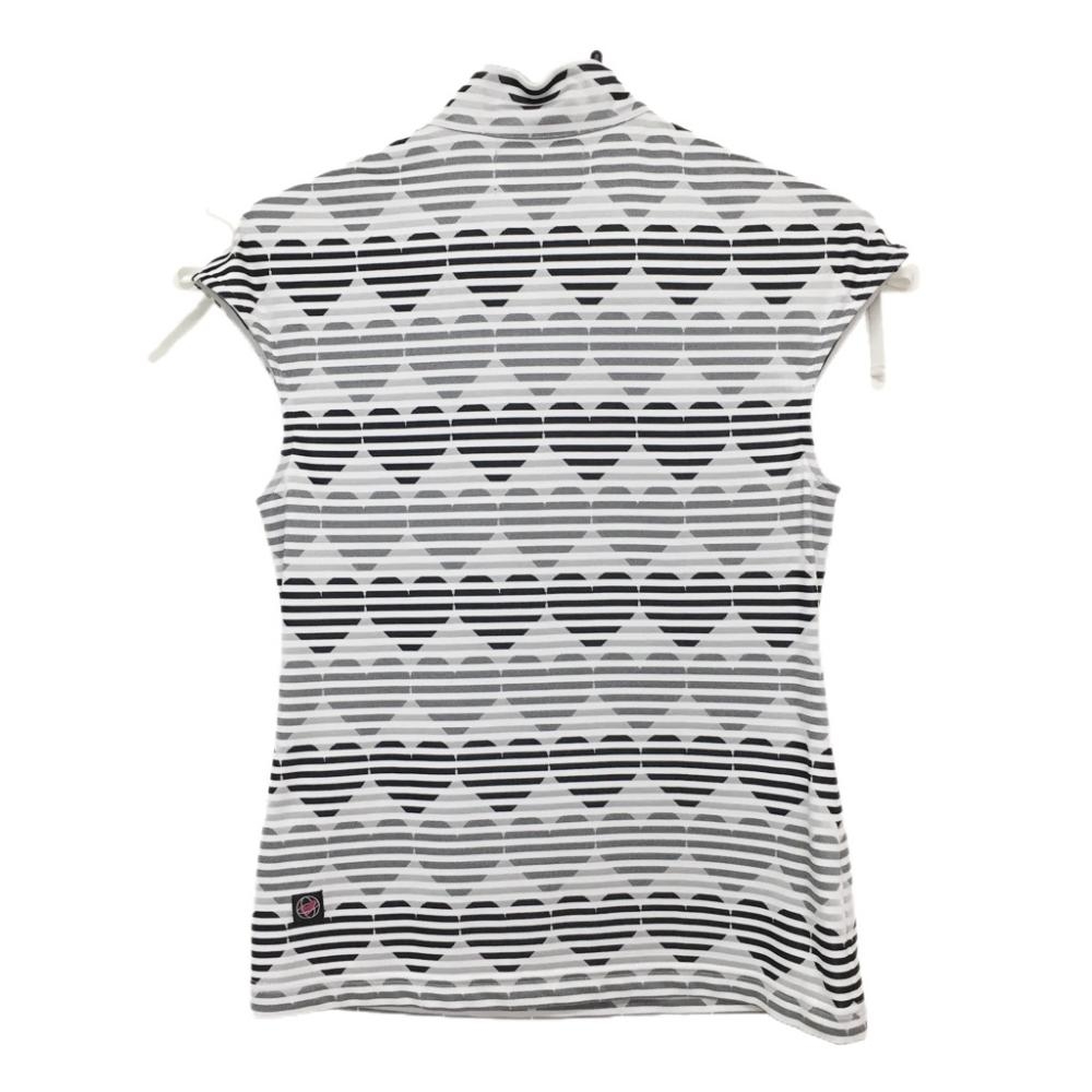 【美品】ビバハート ノースリーブハイネックシャツ 黒×白 ボーダー ハート総柄 レディース 40(M) ゴルフウェア VIVA HEART