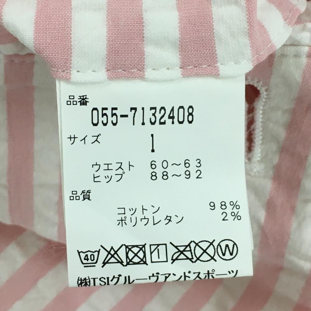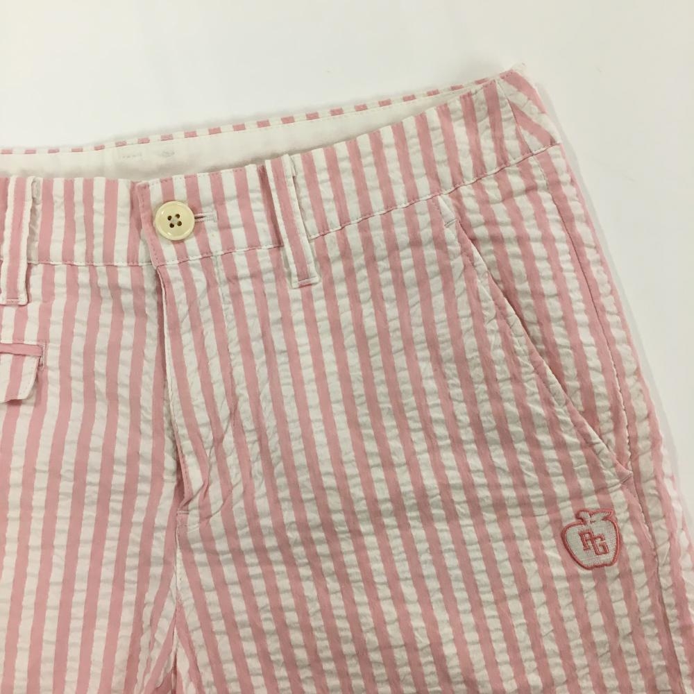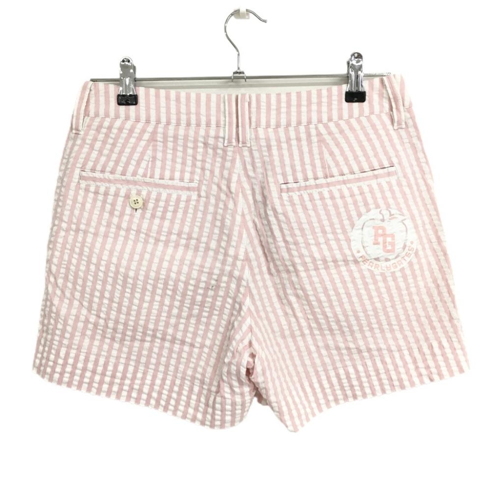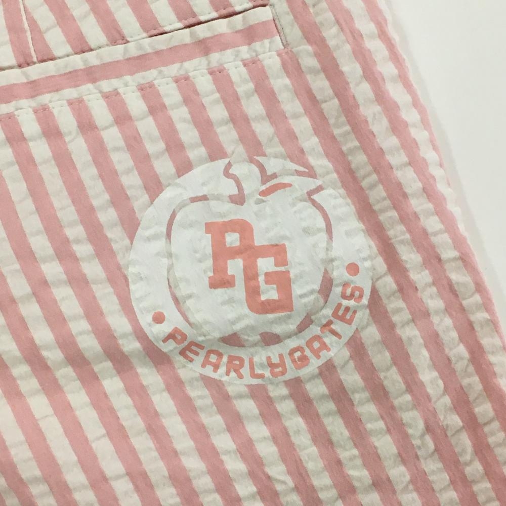 【美品】パーリーゲイツ ショートパンツ 白×ピンク ストライプ サッカー生地 レディース 1 ゴルフウェア PEARLY GATES