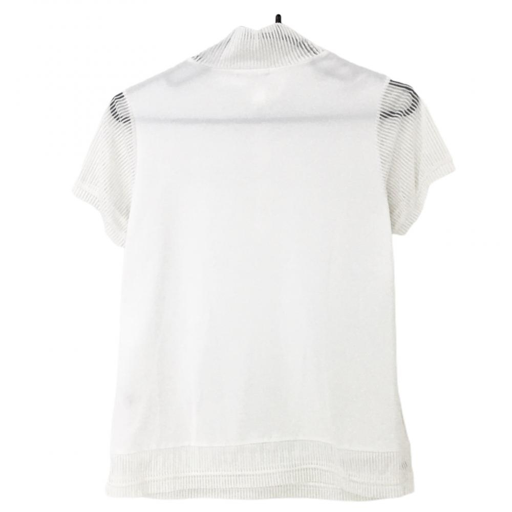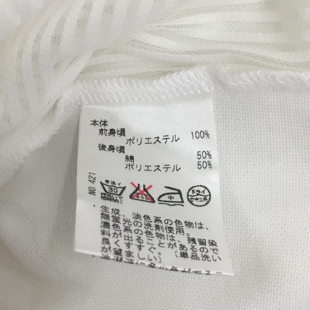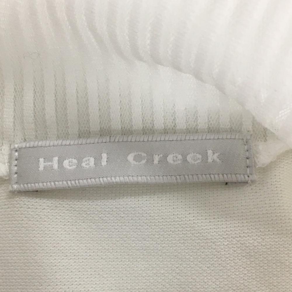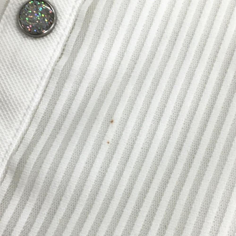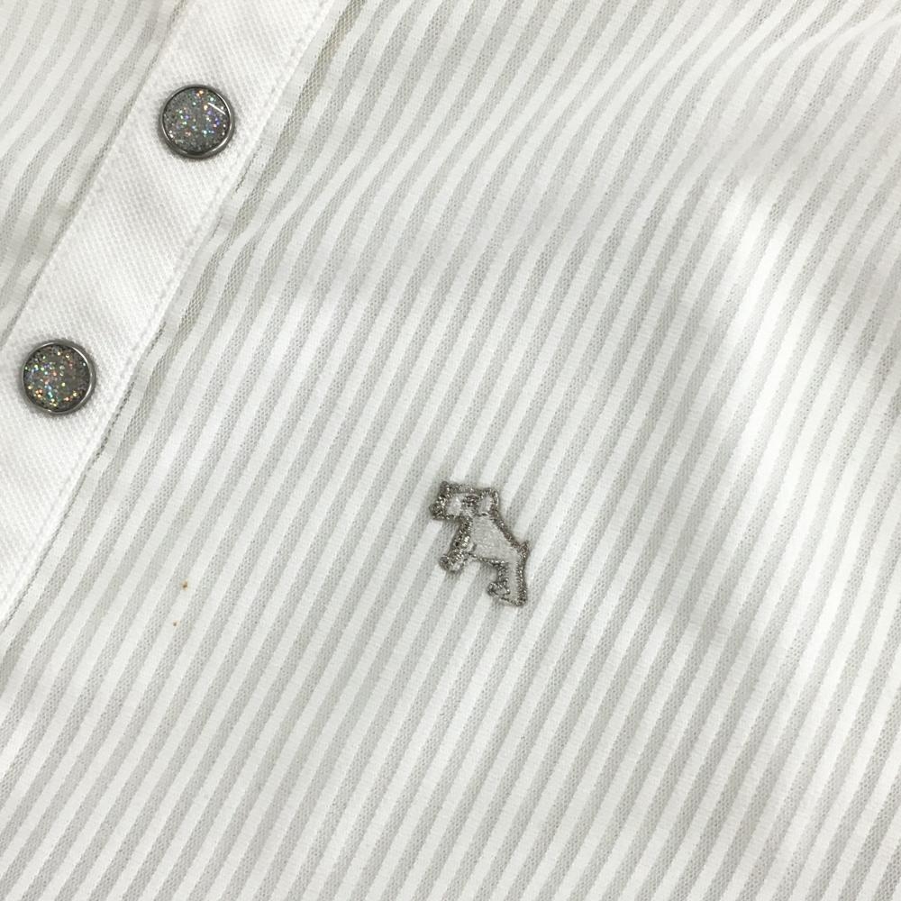 【美品】ヒールクリーク 半袖ハイネックシャツ 白 前面・袖シアーストライプ スナップボタン レディース 40(M) ゴルフウェア Heal Creek