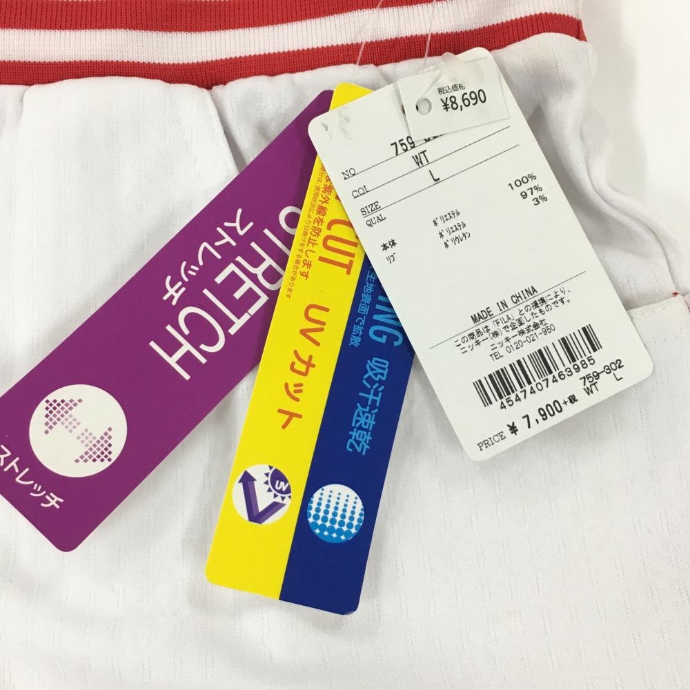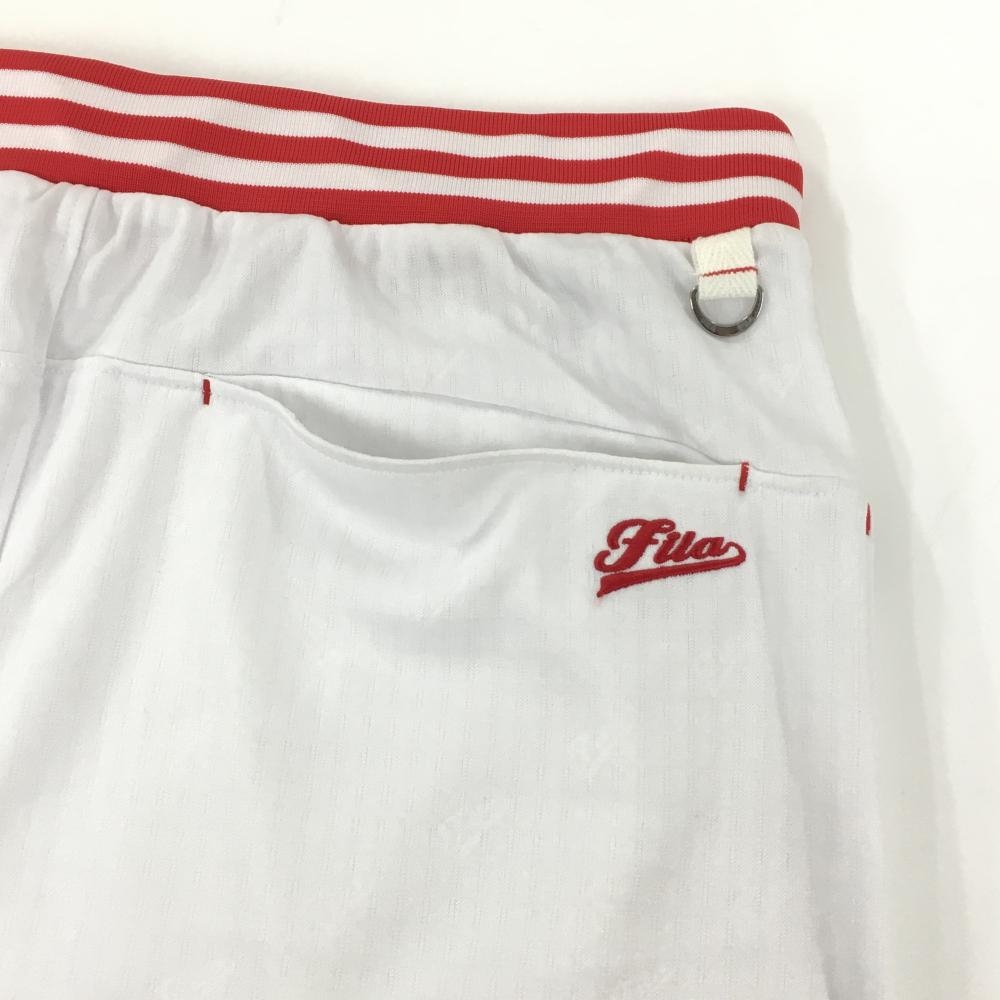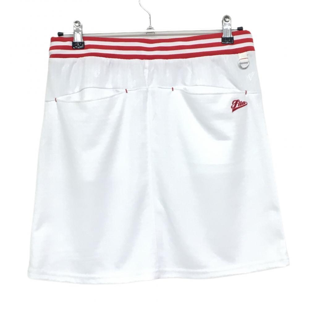 フィラゴルフ スカート 白×レッド ウエストボーダー 地模様 紙タグ付き レディース L ゴルフウェア FILA GOLF