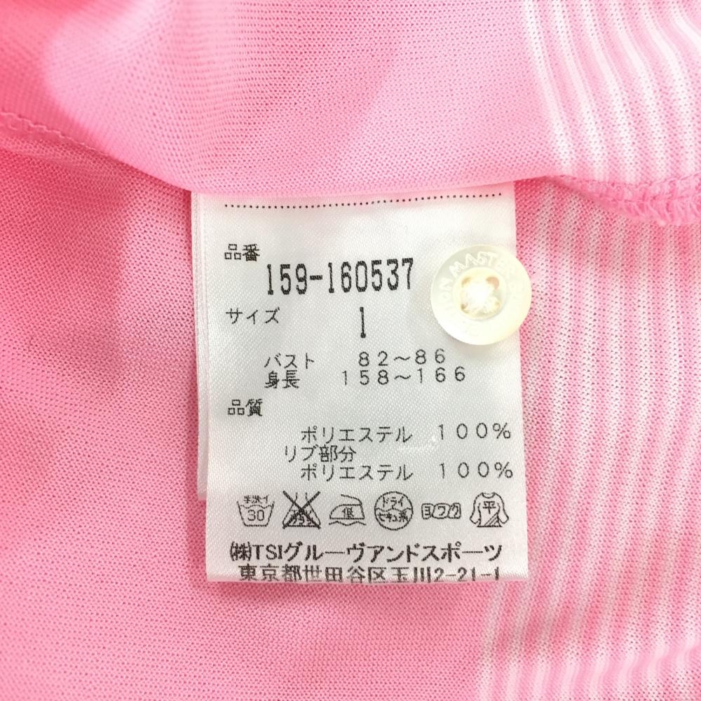 【美品】マスターバニー 半袖ポロシャツ ピンク×白 ボーダー レディース 1(M) ゴルフウェア MASTER BUNNY EDITION