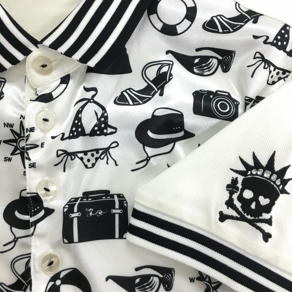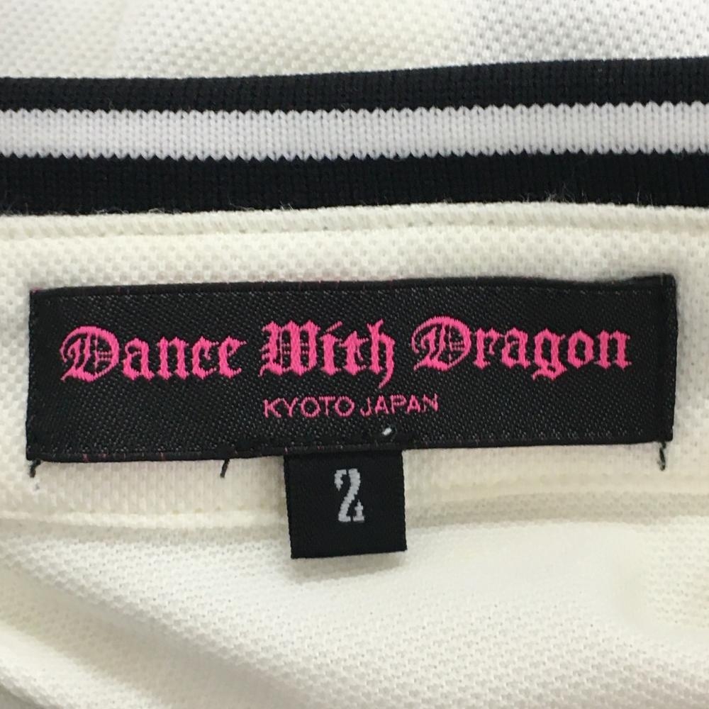 ダンスウィズドラゴン 半袖ポロシャツ 白×黒 前総柄 レディース 2(M) ゴルフウェア Dance With Dragon