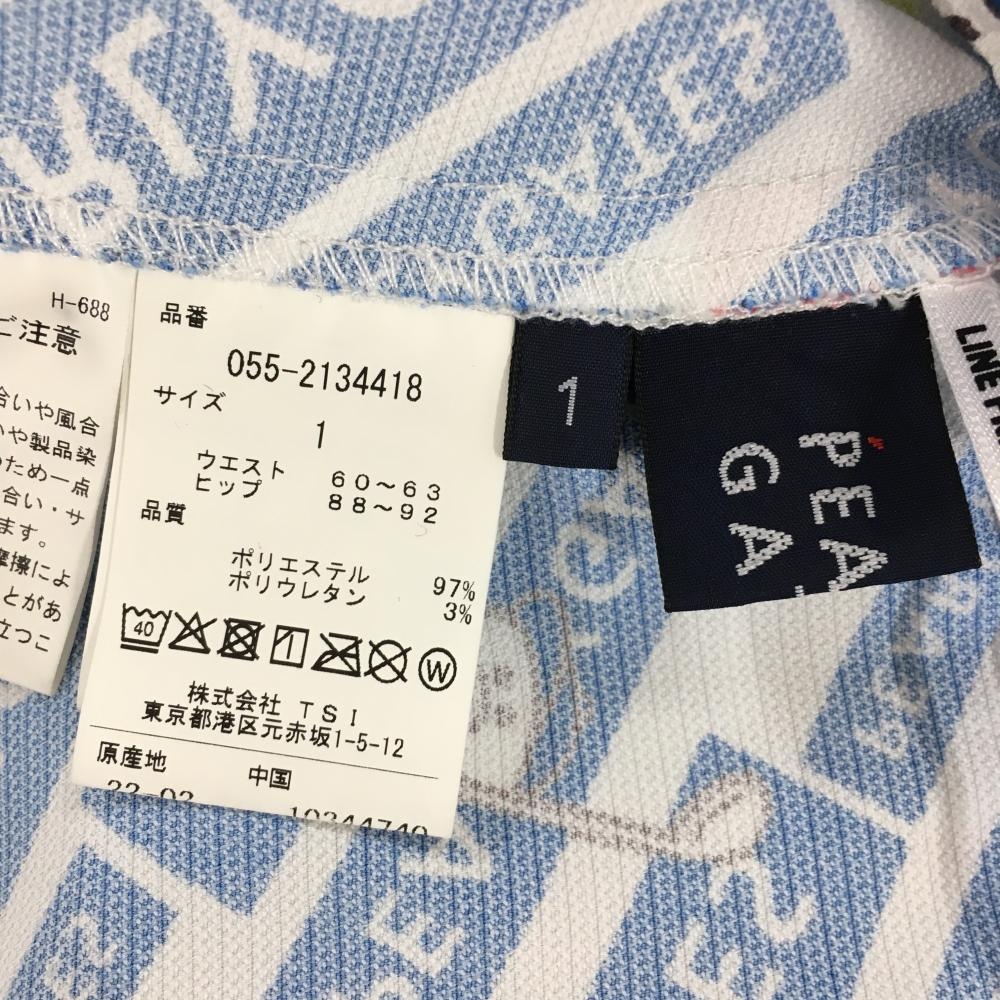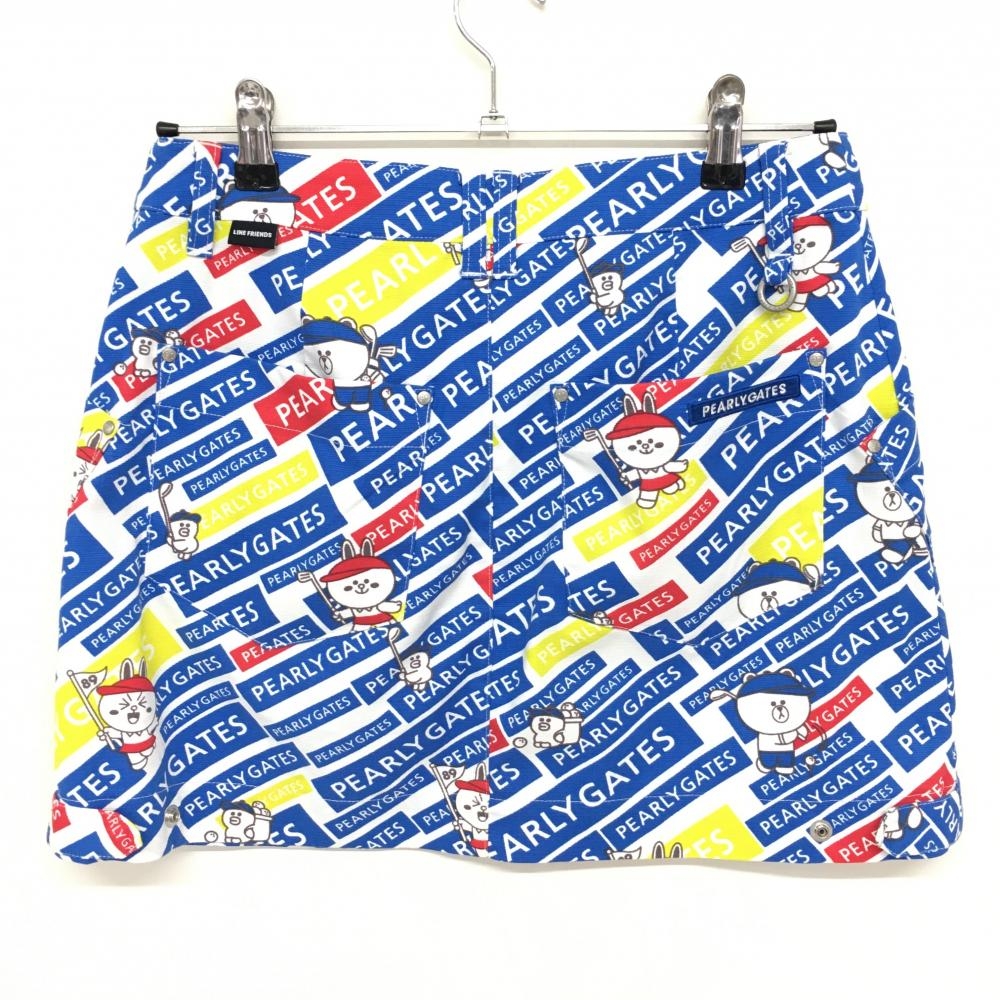 【超美品】パーリーゲイツ×LINE FRIENDS スカート 白×ブルー 斜めロゴ総柄 レディース 1(M) ゴルフウェア 2022年モデル PEARLY GATES