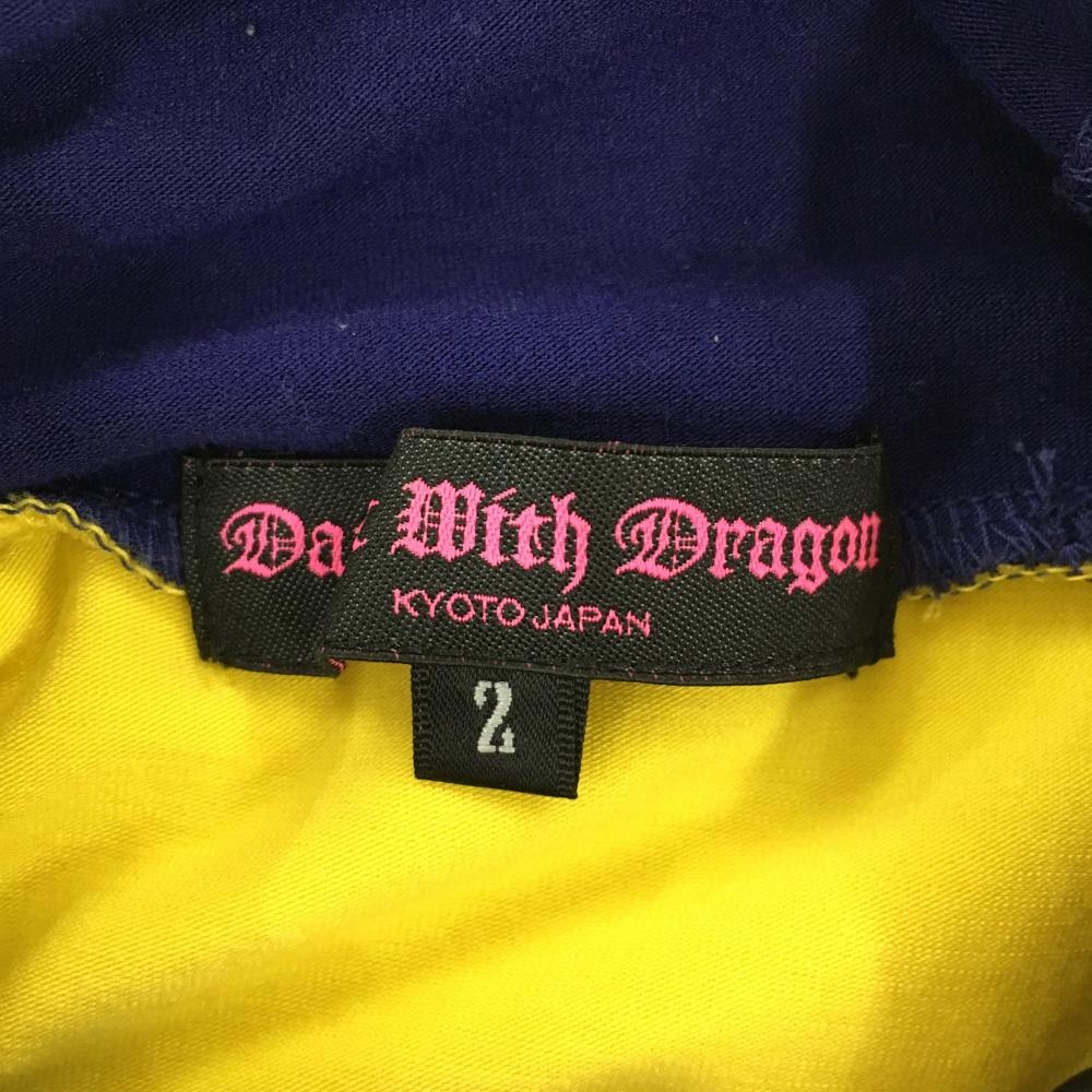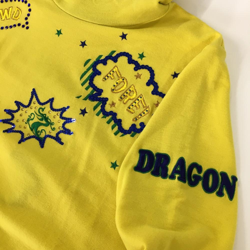 【美品】ダンスウィズドラゴン 長袖ハイネックシャツ イエロー×ブルー スパンコール レディース 2(M) ゴルフウェア Dance With Dragon
