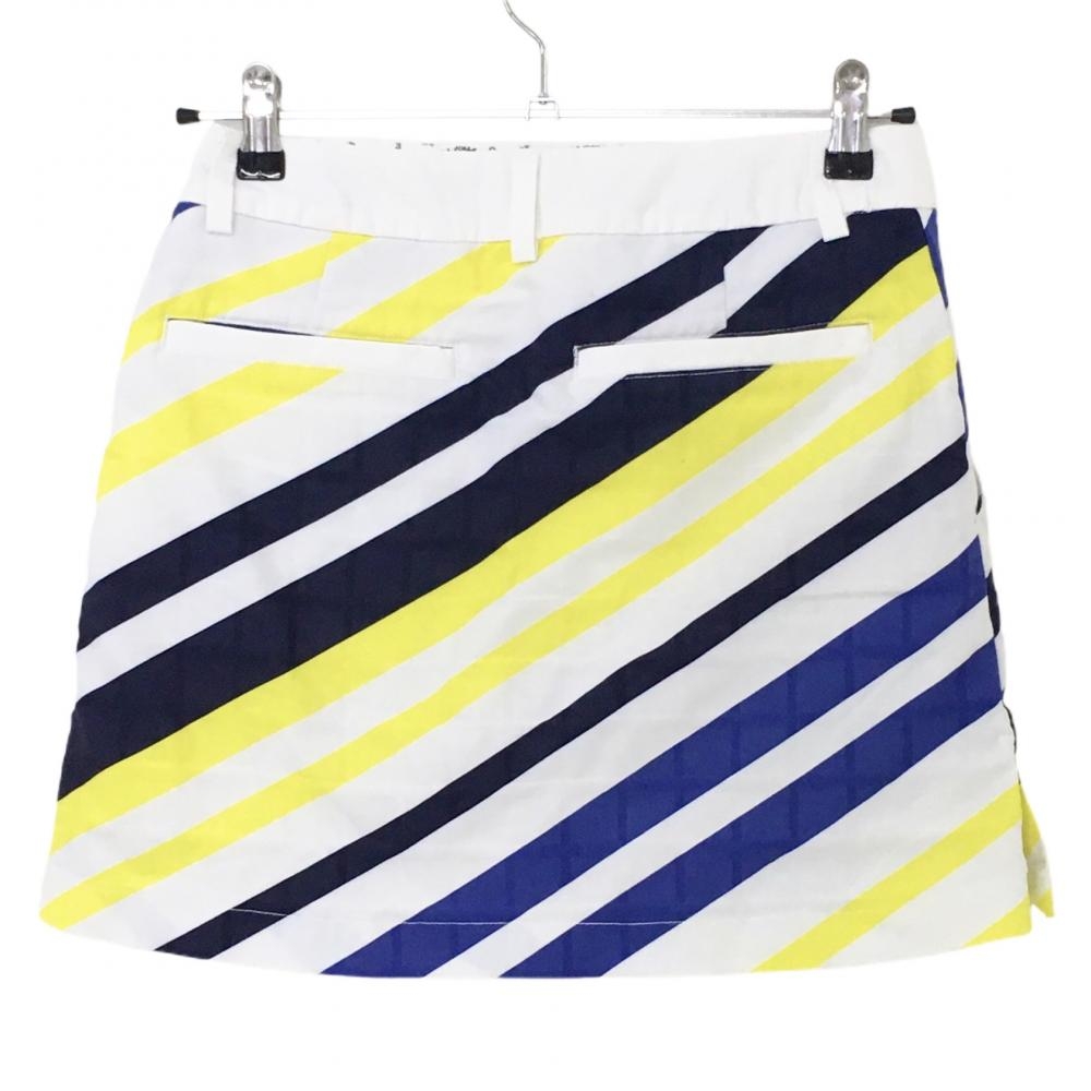 キャロウェイ スカート 白×ネイビー 斜めボーダー 格子織生地 内側インナーパンツ レディース M ゴルフウェア Callaway