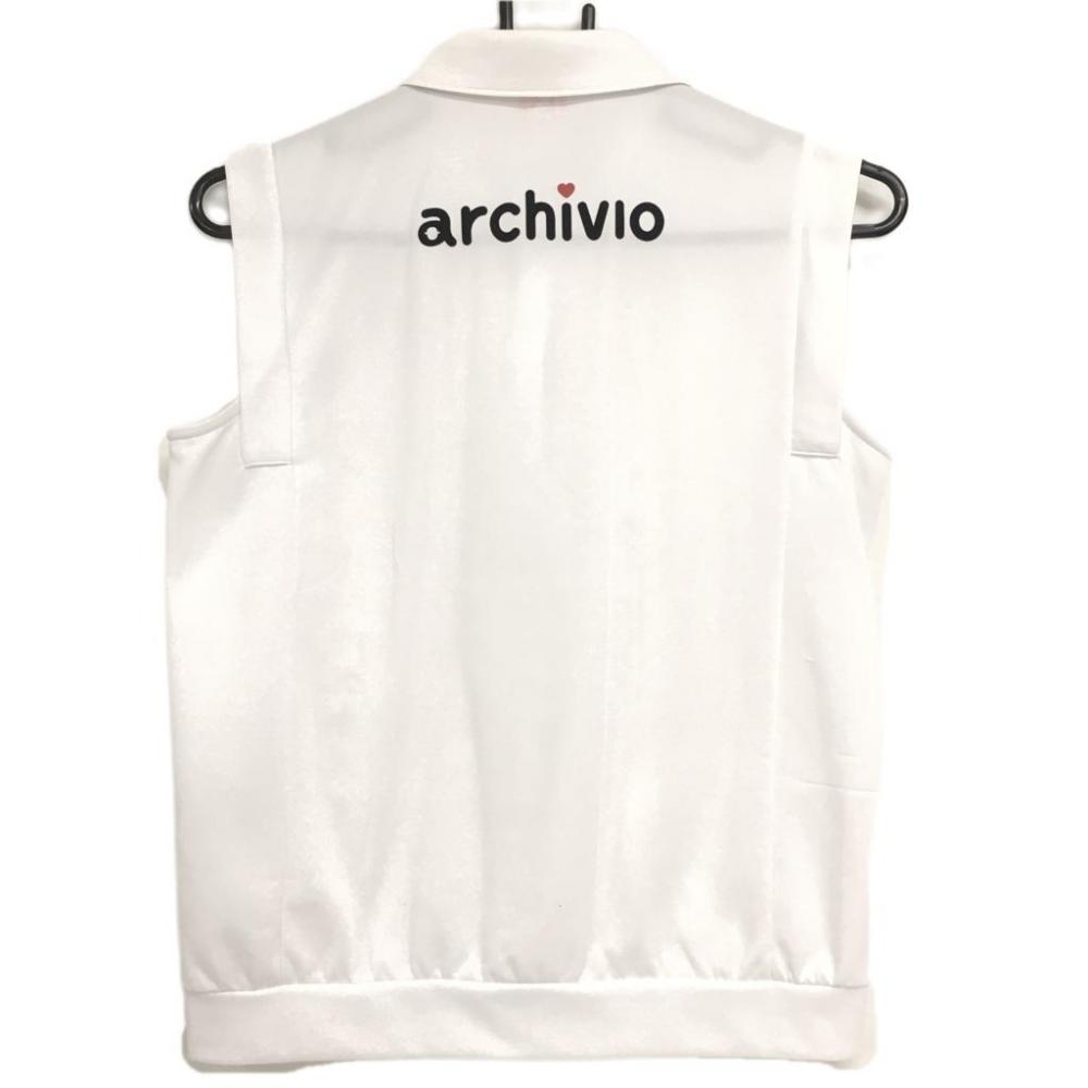 アルチビオ ノースリーブポロシャツ 白 ロゴビーズ 前レース調 レディース 38(M) ゴルフウェア archivio