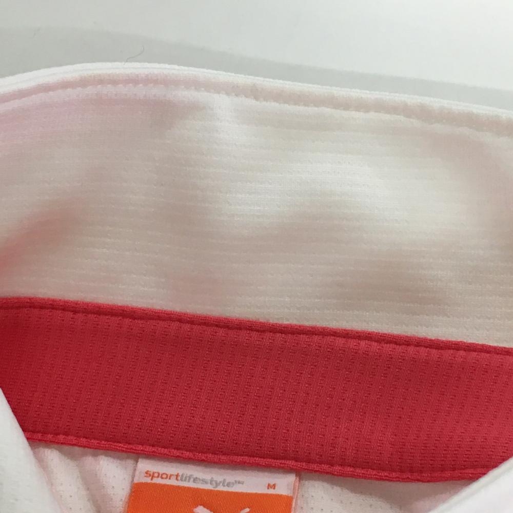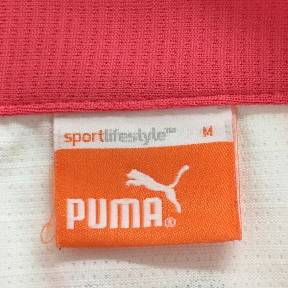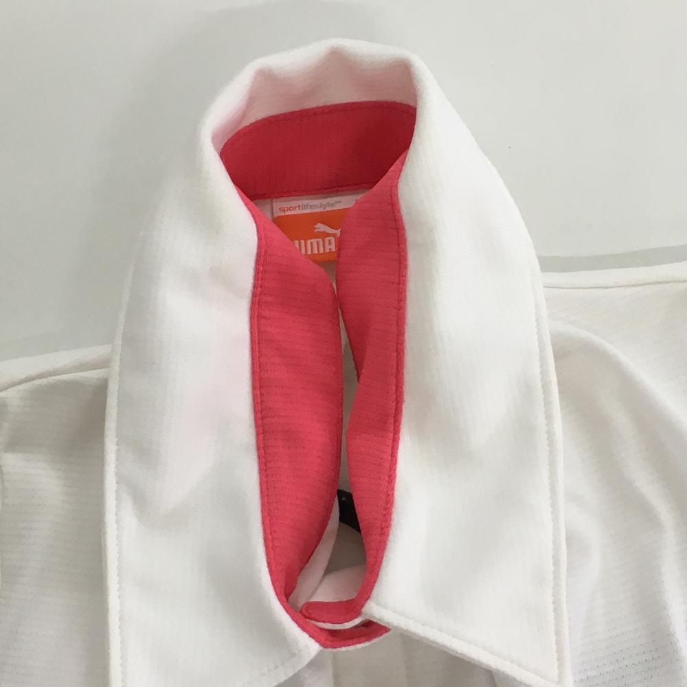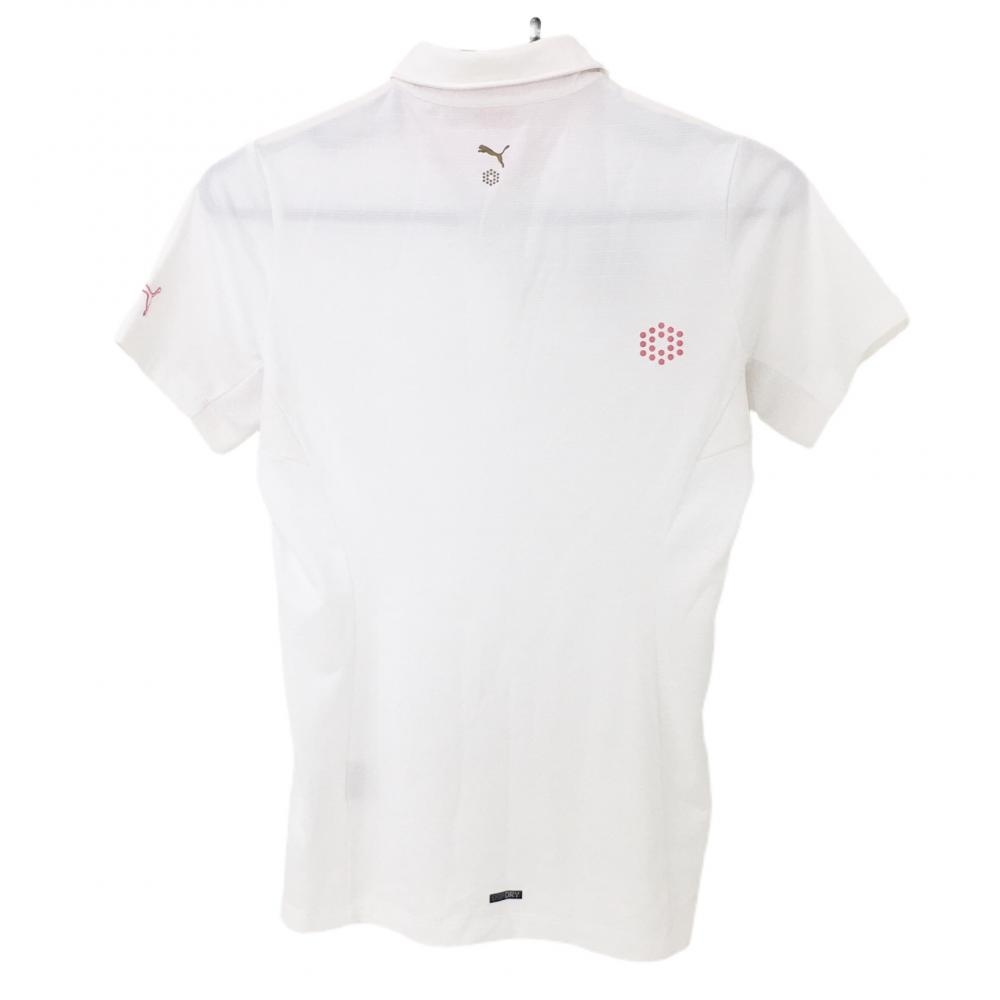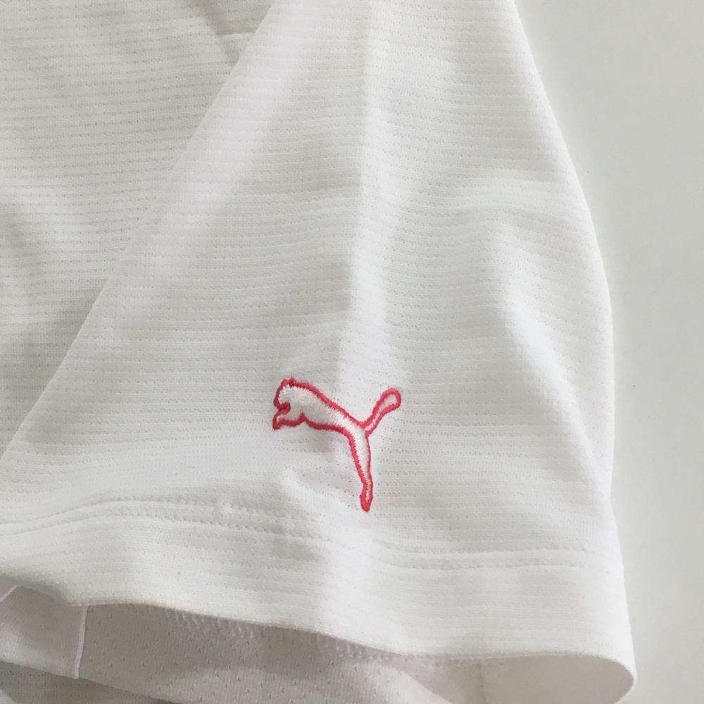 プーマ 半袖ポロシャツ 白×ピンク ロゴ刺しゅう 袖下メッシュ レディース M ゴルフウェア PUMA