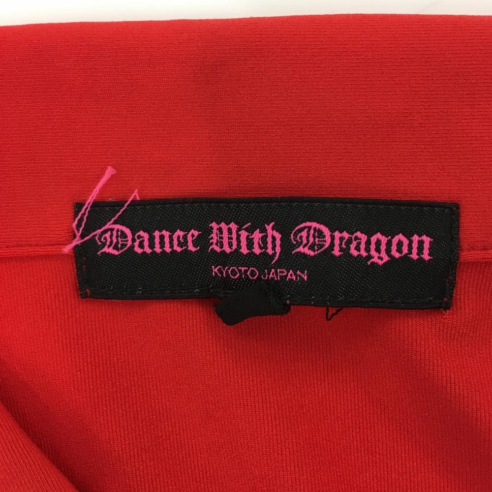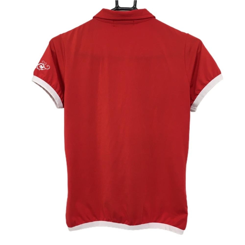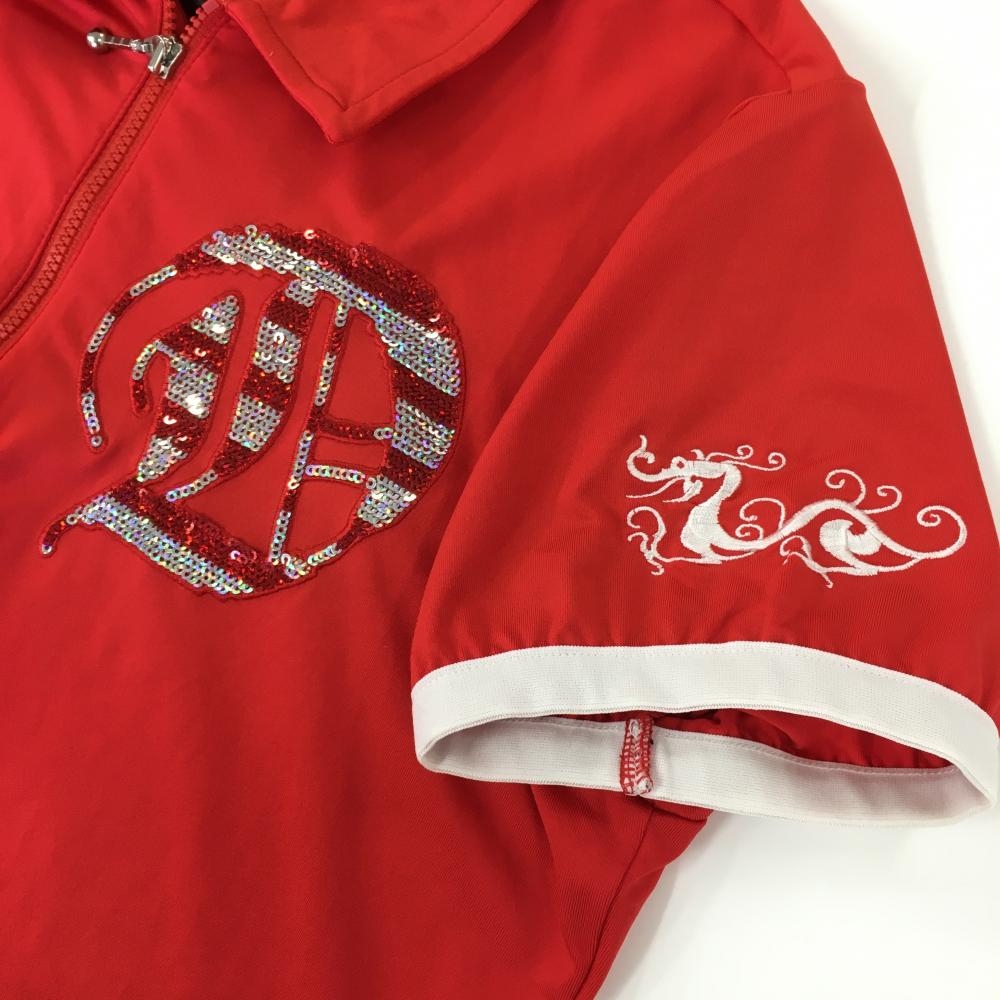 【美品】ダンスウィズドラゴン 半袖ポロシャツ レッド スパンコール ハーフジップ レディース 2(M) ゴルフウェア Dance With Dragon