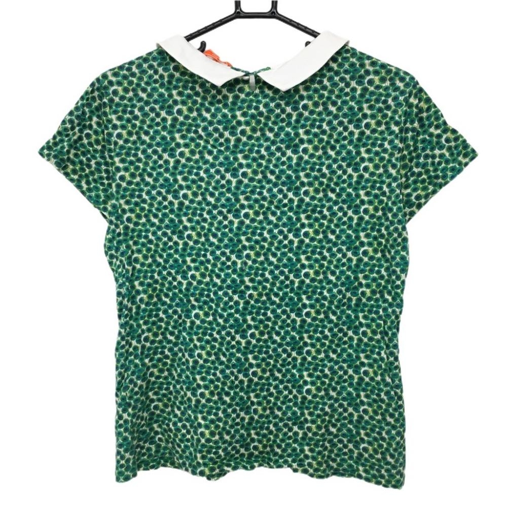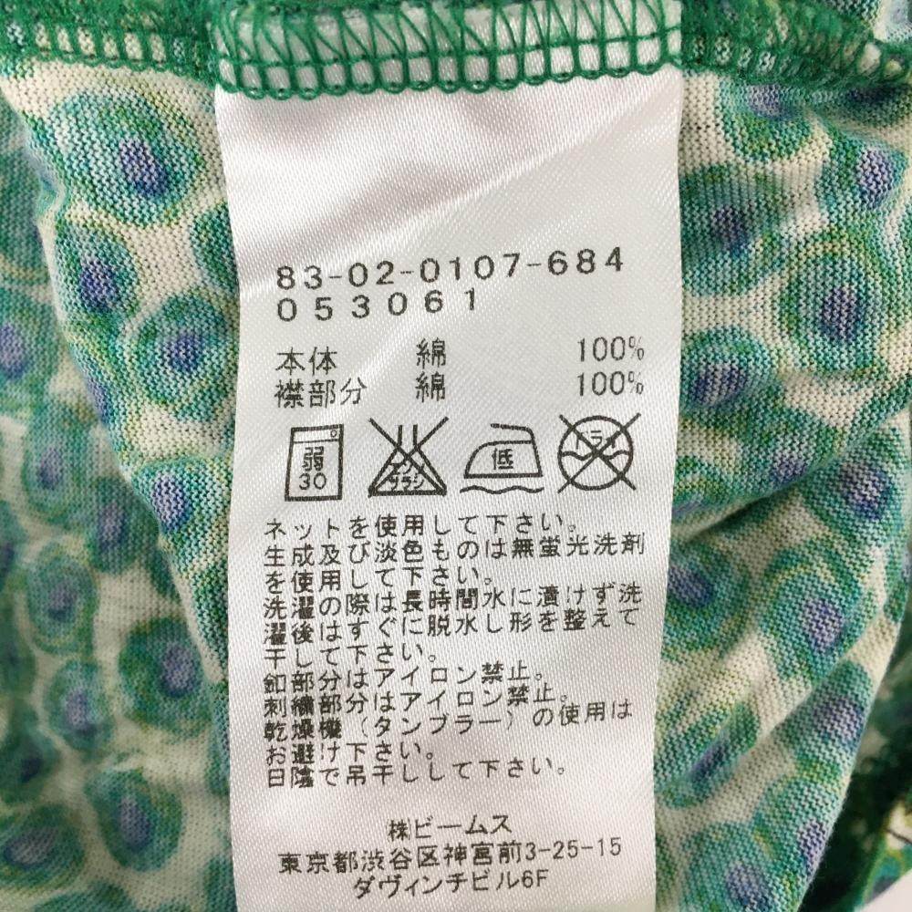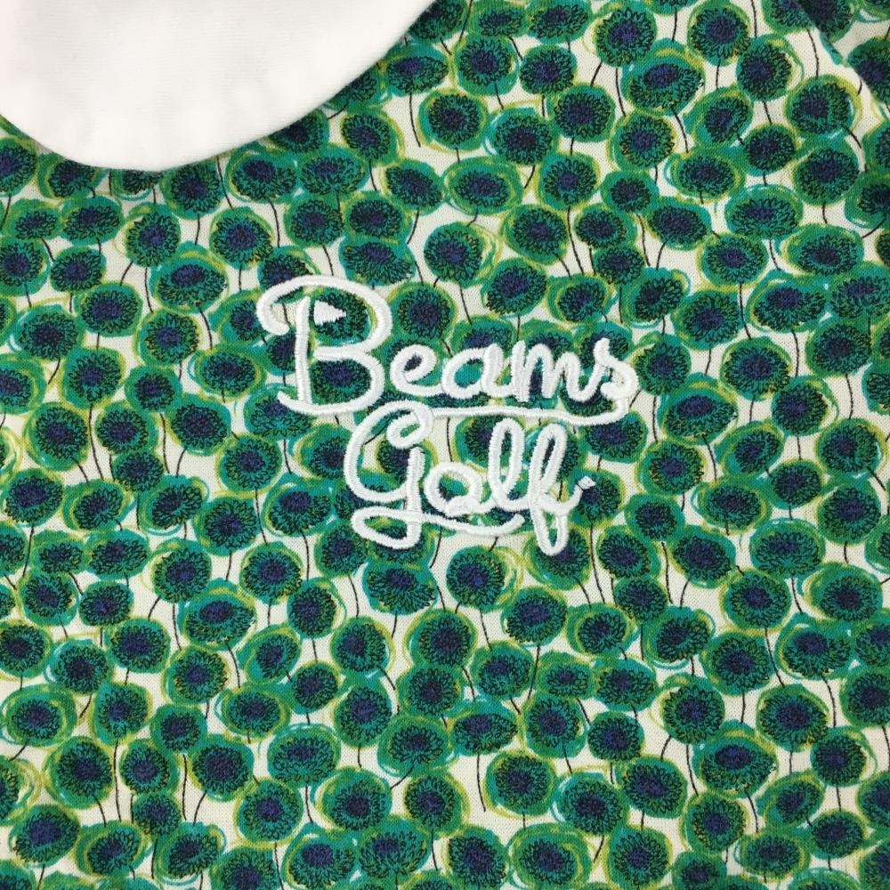 ビームスゴルフ 襟付き半袖シャツ 白×グリーン 花柄 ロゴ刺しゅう レディース L ゴルフウェア BEAMS GOLF