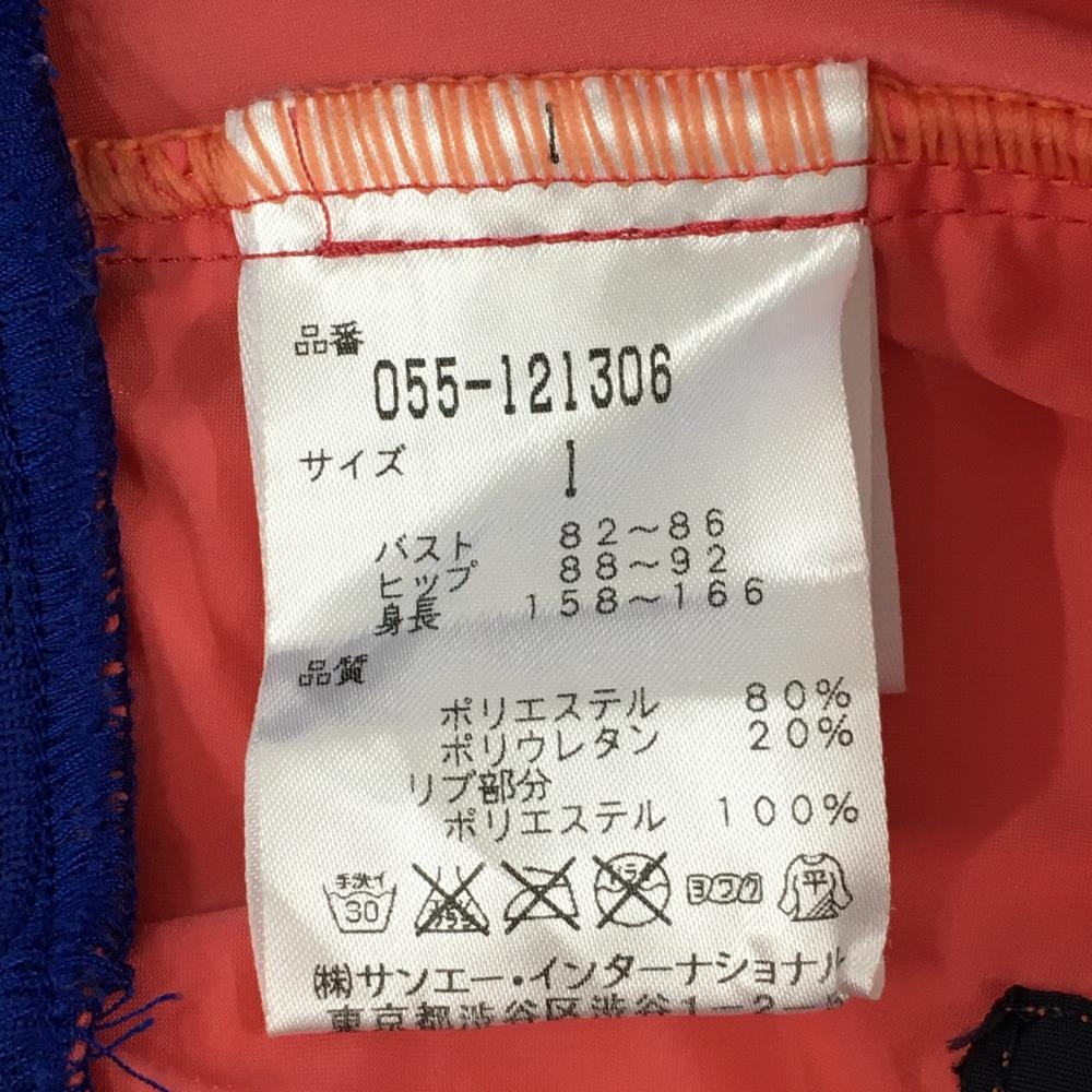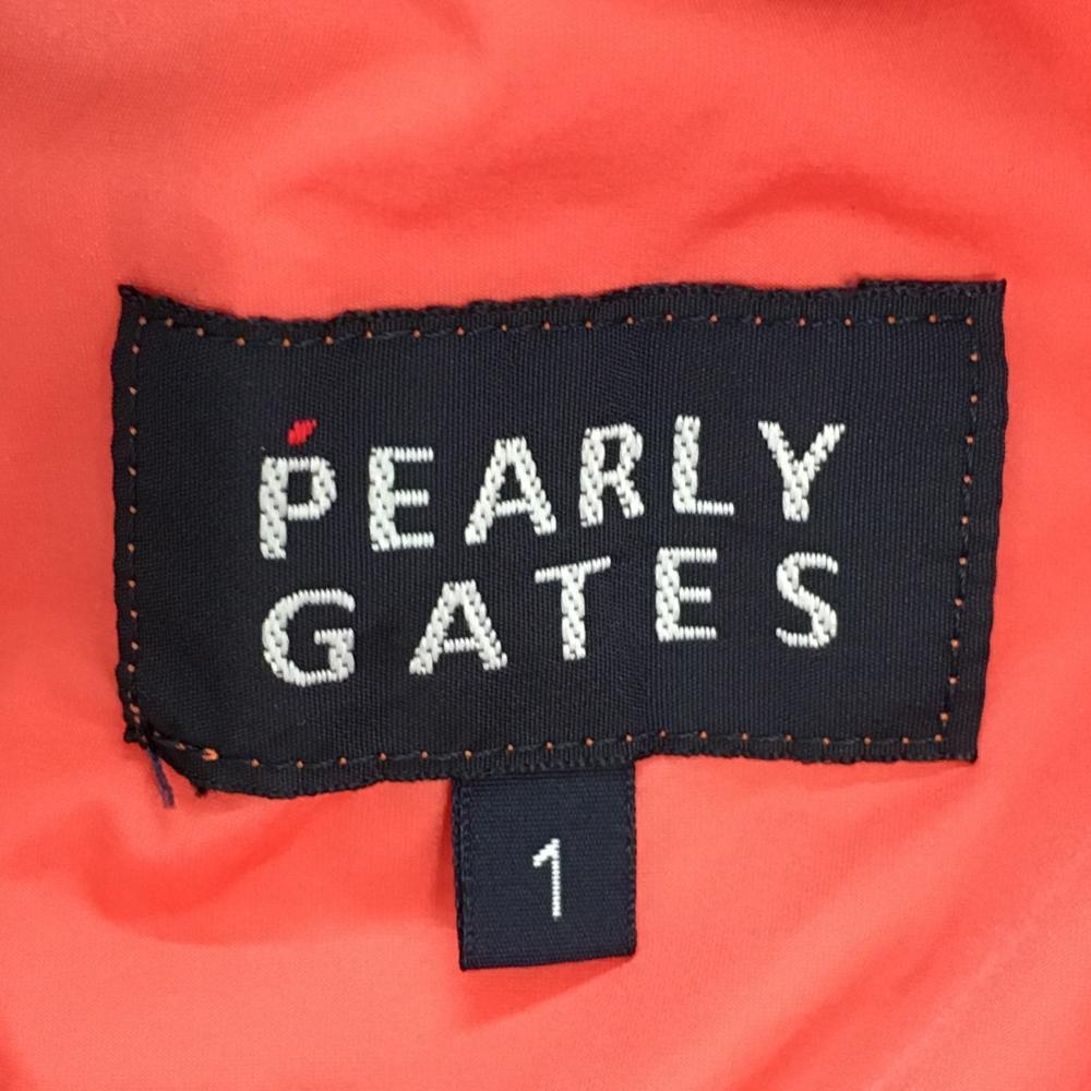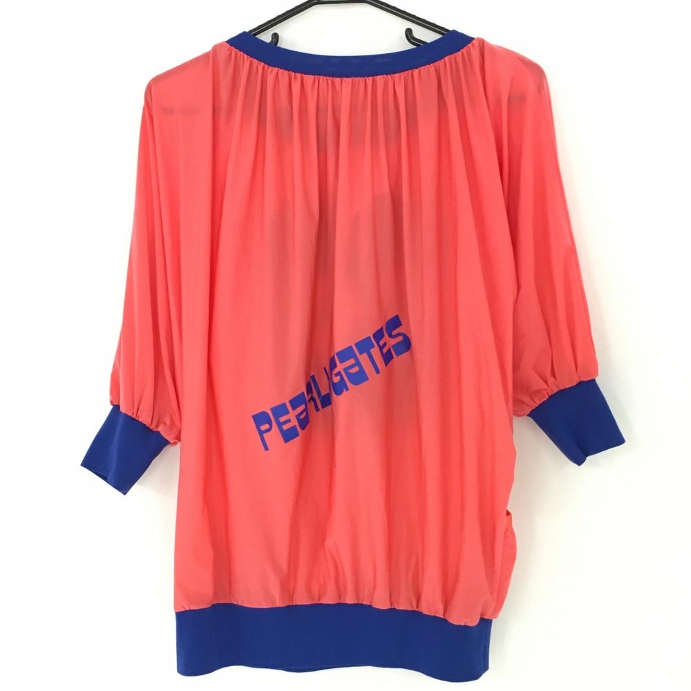 【美品】パーリーゲイツ 半端袖スニード サーモンピンク×ブルー 薄手 ブルゾンビッグプリント レディース 1(M) ゴルフウェア PEARLY GATES