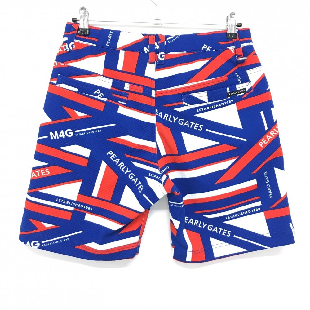 【美品】パーリーゲイツ ハーフパンツ ブルー×レッド ユニオンジャック柄 織生地 メンズ 4(M) ゴルフウェア 2022年モデル PEARLY GATES
