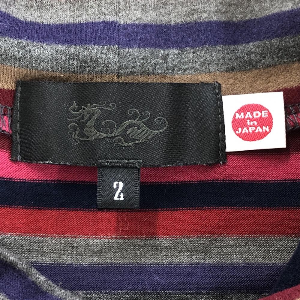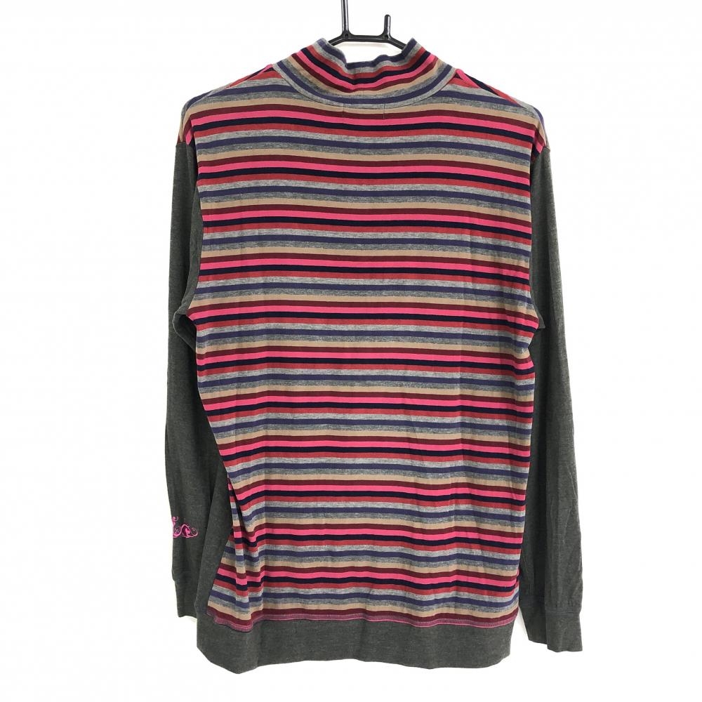 【美品】ダンスウィズドラゴン 長袖ハイネックシャツ グレー×ピンク×パープル メンズ 2(M) ゴルフウェア Dance With Dragon