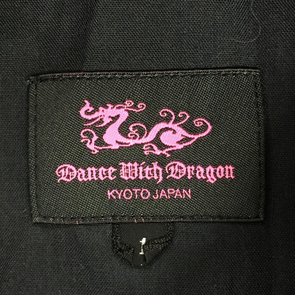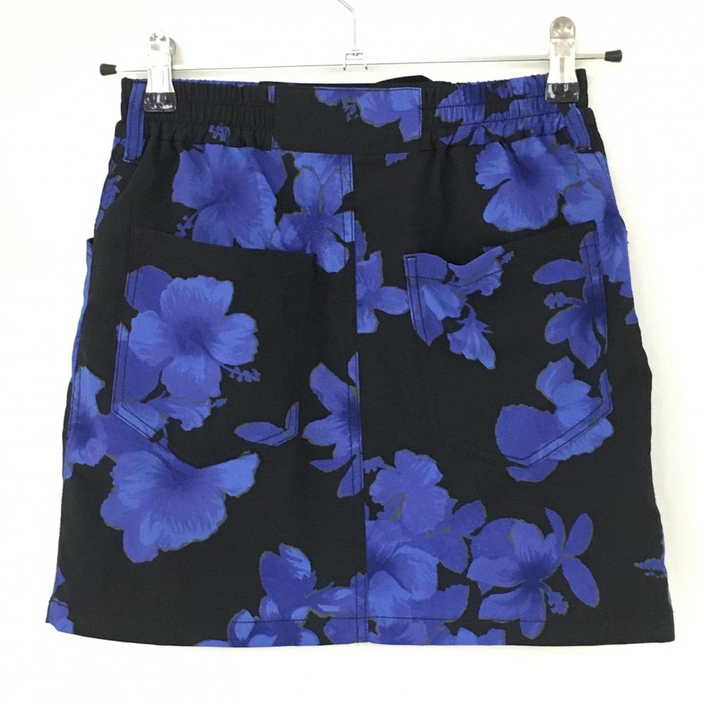 【超美品】ダンスウィズドラゴン スカート 黒×ブルー 花柄 ウエスト一部ゴム レディース 1(S) ゴルフウェア Dance With Dragon