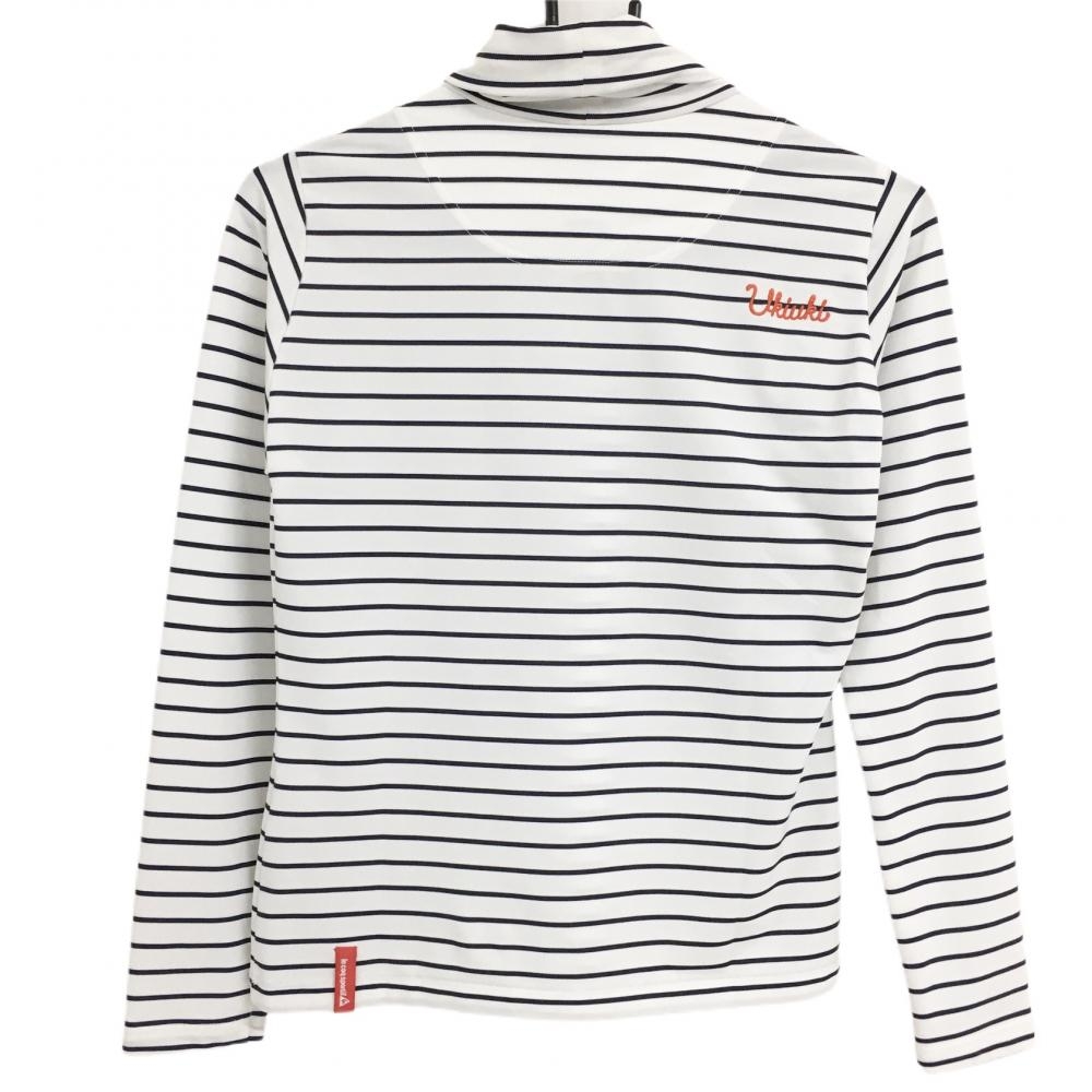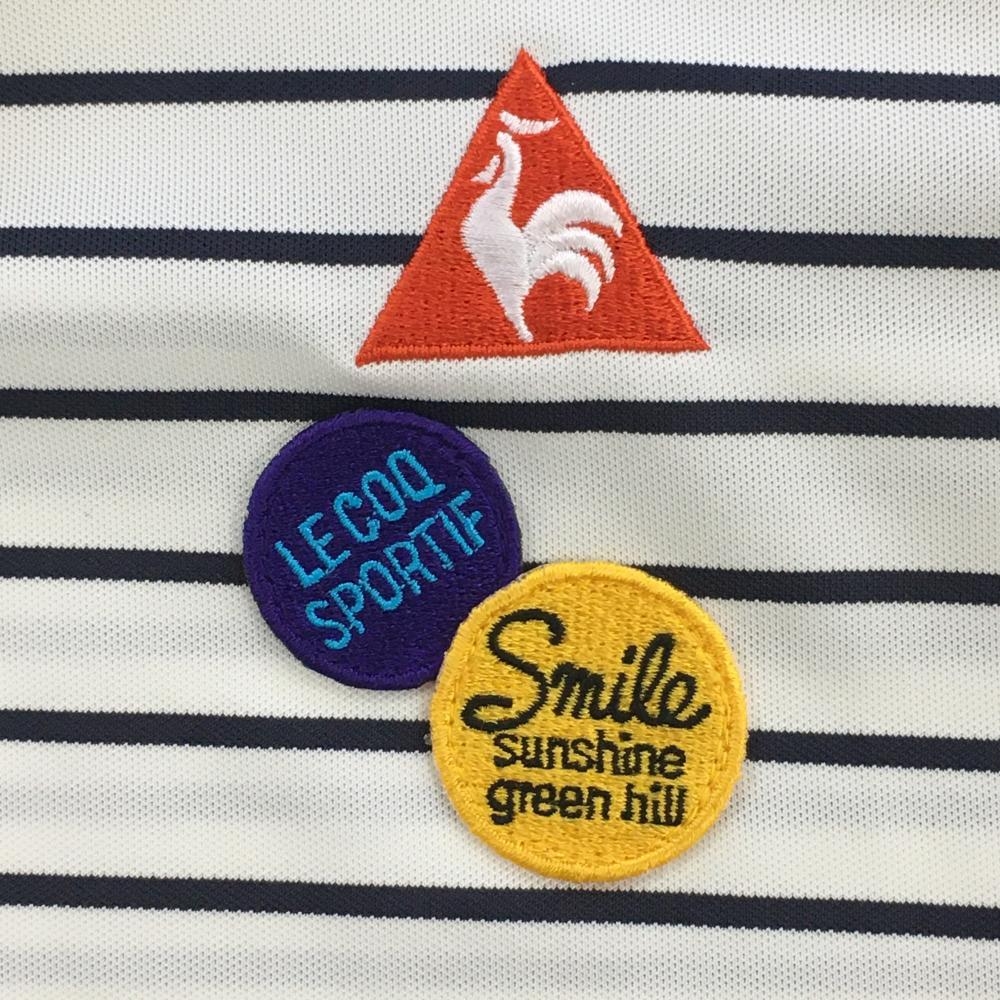 ルコック 長袖ハイネックシャツ 白×ネイビー ボーダー 胸元ワッペン レディース S ゴルフウェア le coq sportif
