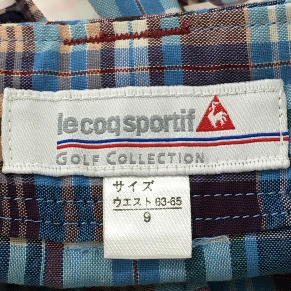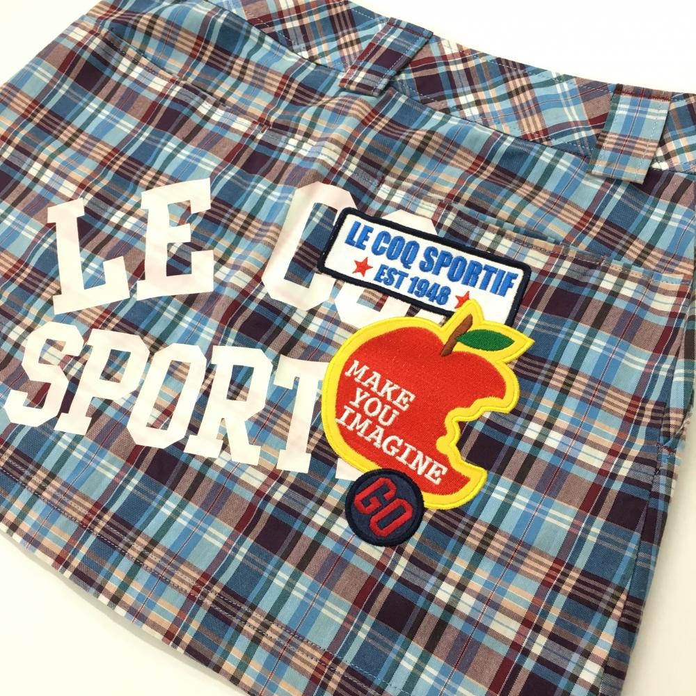 【超美品】ルコック スカート ライトブルー×パープル チェック アップルワッペン レディース 9(M) ゴルフウェア le coq sportif