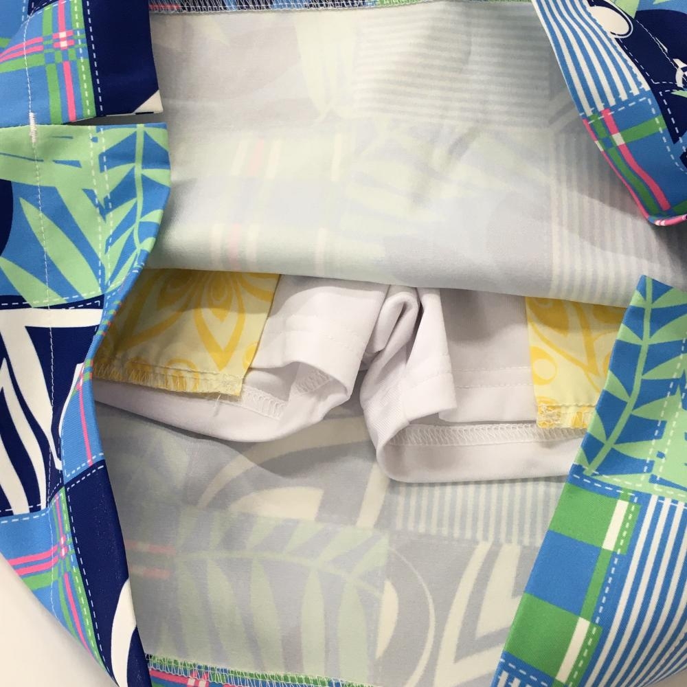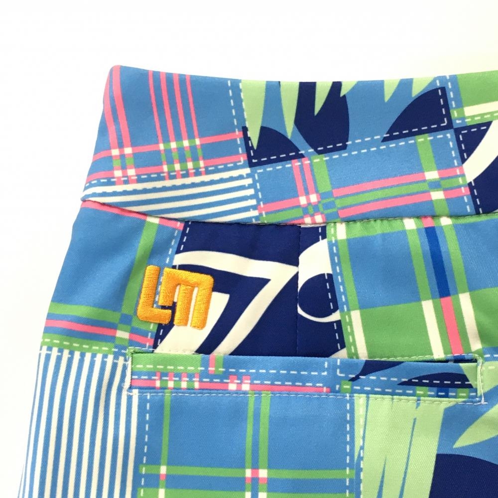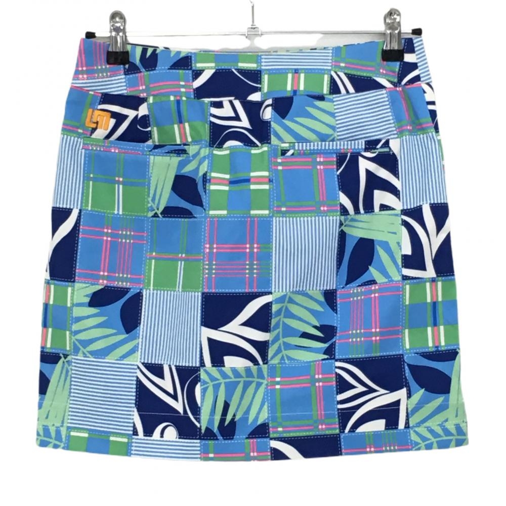 【超美品】ラウドマウス スカート ライトブツー×グリーン パッチワーク風 内側インナーパンツ レディース M ゴルフウェア LOUDMOUTH